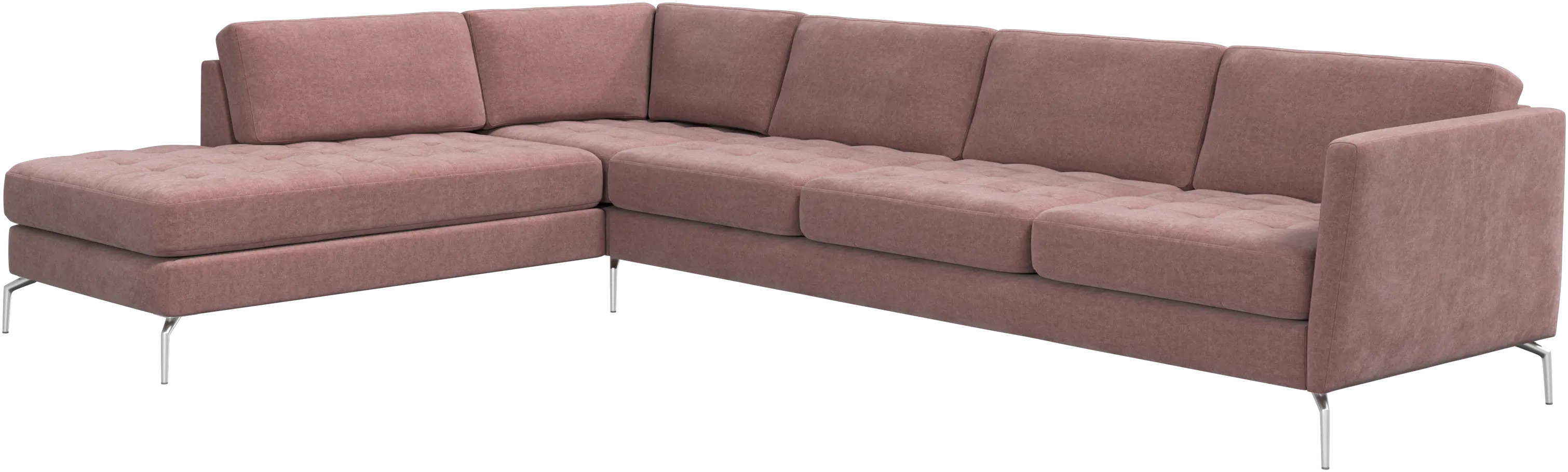 Se svým lehkým vzhledem a štíhlými proporcemi je pohovka Osaka skvělá do malých prostor, přičemž jemný žensky působivý vzhled a náznak designu 60. let zajistí pohovce Osaka vždy stylový efekt. Krásné prošívané sedáky vyzařují měkkost materiálu a dodají obývacímu pokoji klasický vzhled. Nakloněné područky dodávají pohovce moderní, jedinečný vzhled a otevírají ji do prostoru. Dejte si nohy nahoru, protáhněte se nebo ji použijte jako extra sedák – nebudete litovat, že jste si vybrali tuto pohodlnou pohovku s lenoškou.