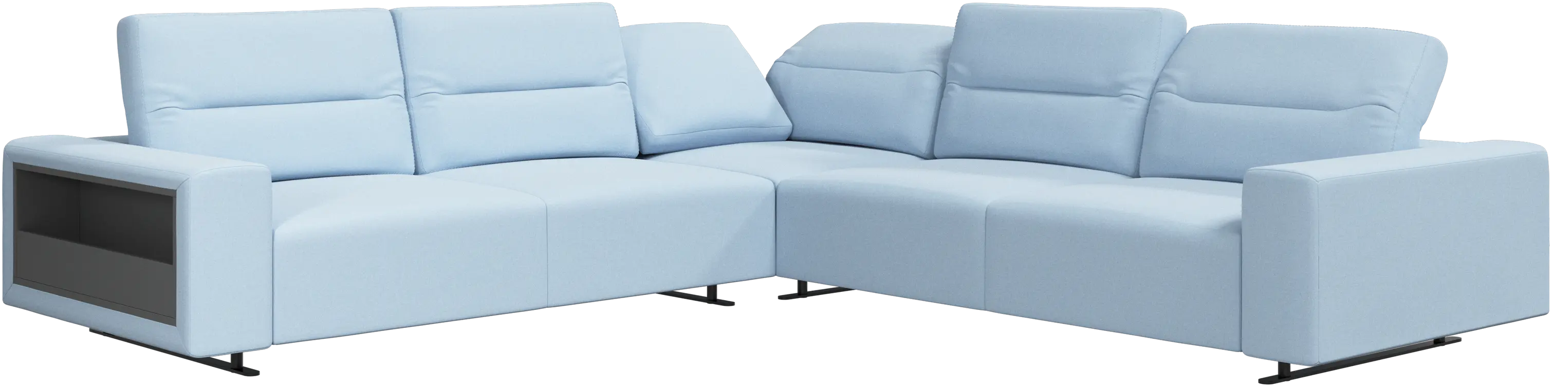 My to víme. Je překrásná. Ale u moderní pohovky Hampton toho oceníte mnohem víc, než jen pěkný vzhled. Nízká základna, úchvatný patrový vzhled, nastavitelné zádové sedáky pro větší pohodlí a vizuální dojem – pohovka Hampton je skvělým osobním útočištěm. Otevřený konec vytvoří dynamické, lákavé prostředí - skutečný přínos pro integrované plochy otevřeného životního prostoru.