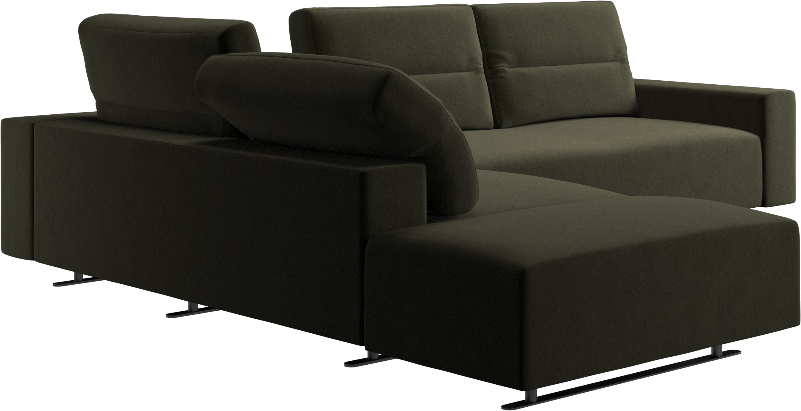 V prošití naleznete krásné detaily, jako je například křížový steh na zádových polštářích. Kožená verze má více střihů a prošití než textilní verze umožňující jiný vzhled podle vaší volby materiálu.