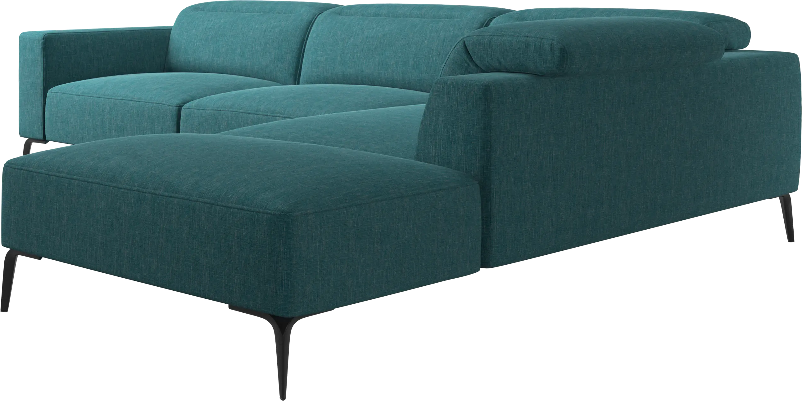 Měkký zaoblený tvar okrajů této pohodlné pohovky v kombinaci s otevřenou základnou zajišťuje lehký a elegantní dojem.
