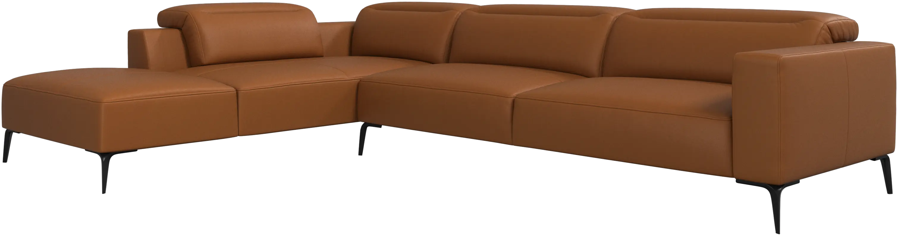 Měkký zaoblený tvar okrajů této pohodlné pohovky v kombinaci s otevřenou základnou zajišťuje lehký a elegantní dojem.