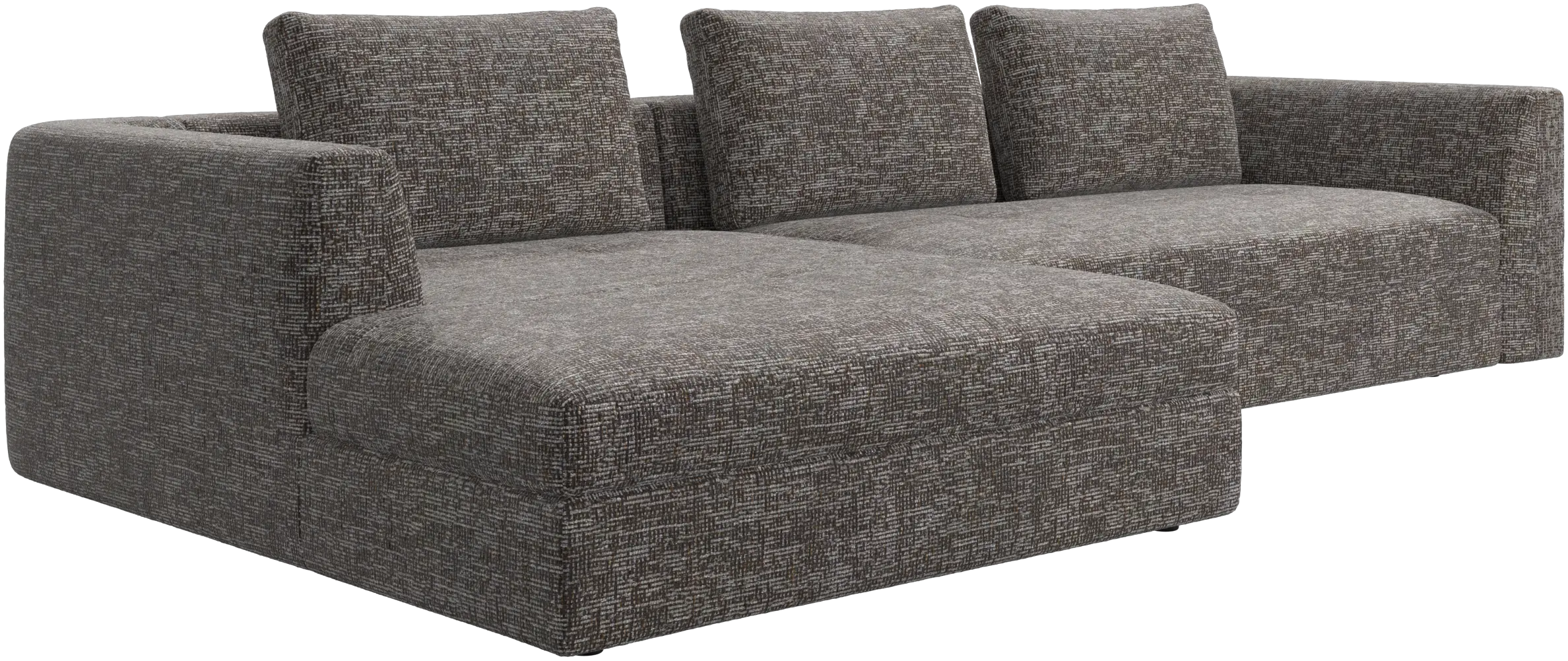 Pohovka Bergamo je usazena na nízkých, nenápadných nohách, které vytvářejí lehký, „vznášející se“ vzhled.
