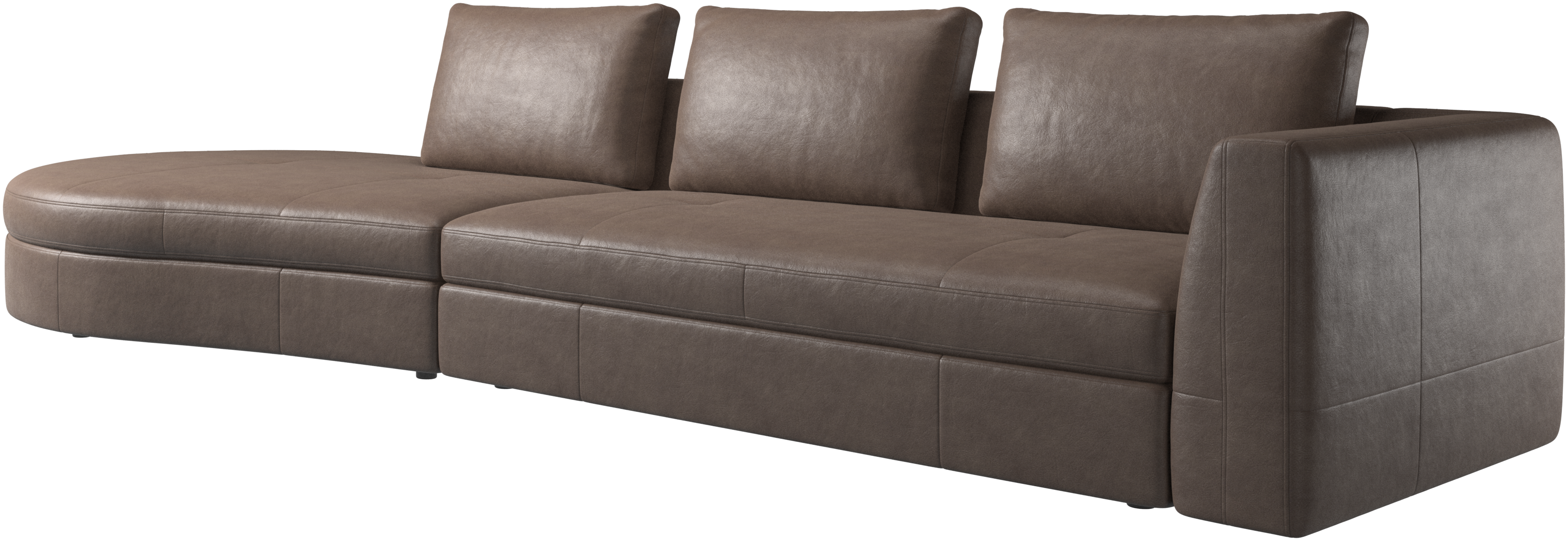 Sjednocující design švů na základně, opěrkách rukou a opěradle dodává pohovce Bergamo elegantní pocit pohodlí.