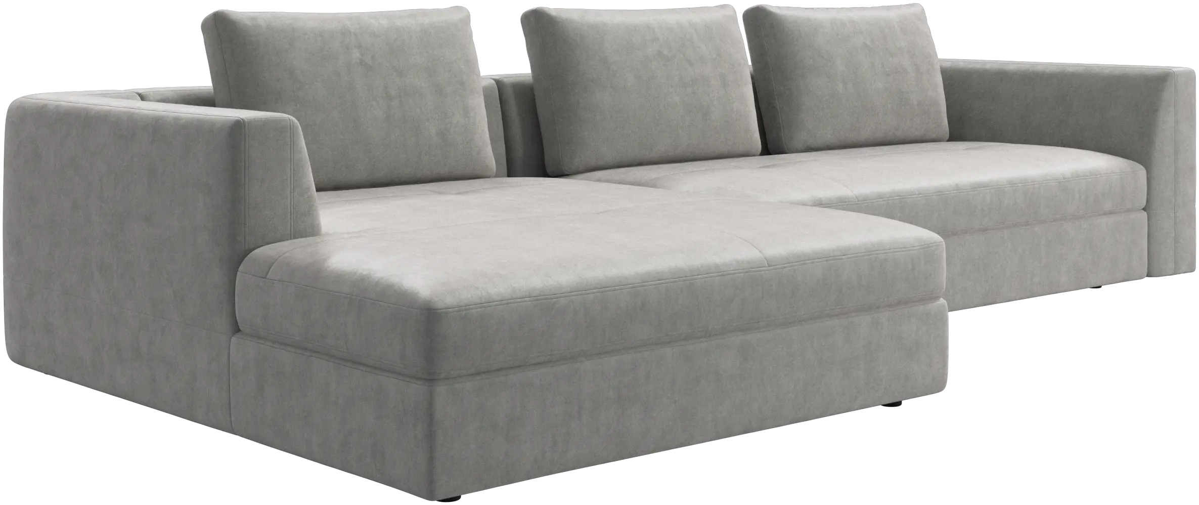 Pohovka Bergamo je usazena na nízkých, nenápadných nohách, které vytvářejí lehký, „vznášející se“ vzhled.