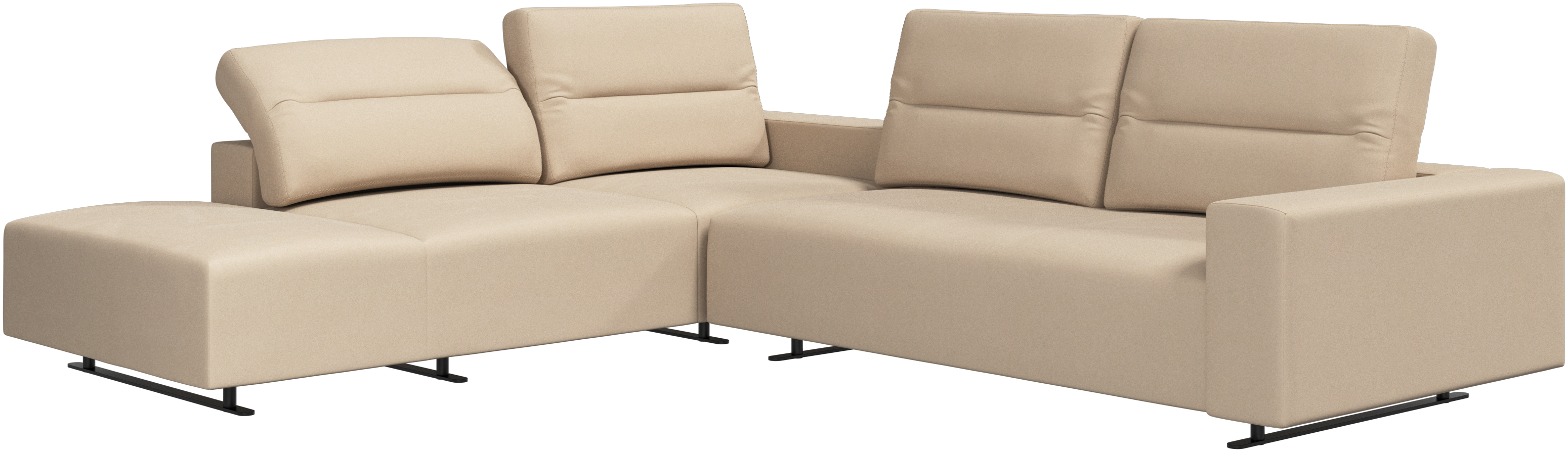 My to víme. Je překrásná. Ale u moderní pohovky Hampton toho oceníte mnohem víc, než jen pěkný vzhled. Nízká základna, úchvatný patrový vzhled, nastavitelné zádové sedáky pro větší pohodlí a vizuální dojem – pohovka Hampton je skvělým osobním útočištěm. Otevřený konec vytvoří dynamické, lákavé prostředí - skutečný přínos pro integrované plochy otevřeného životního prostoru.