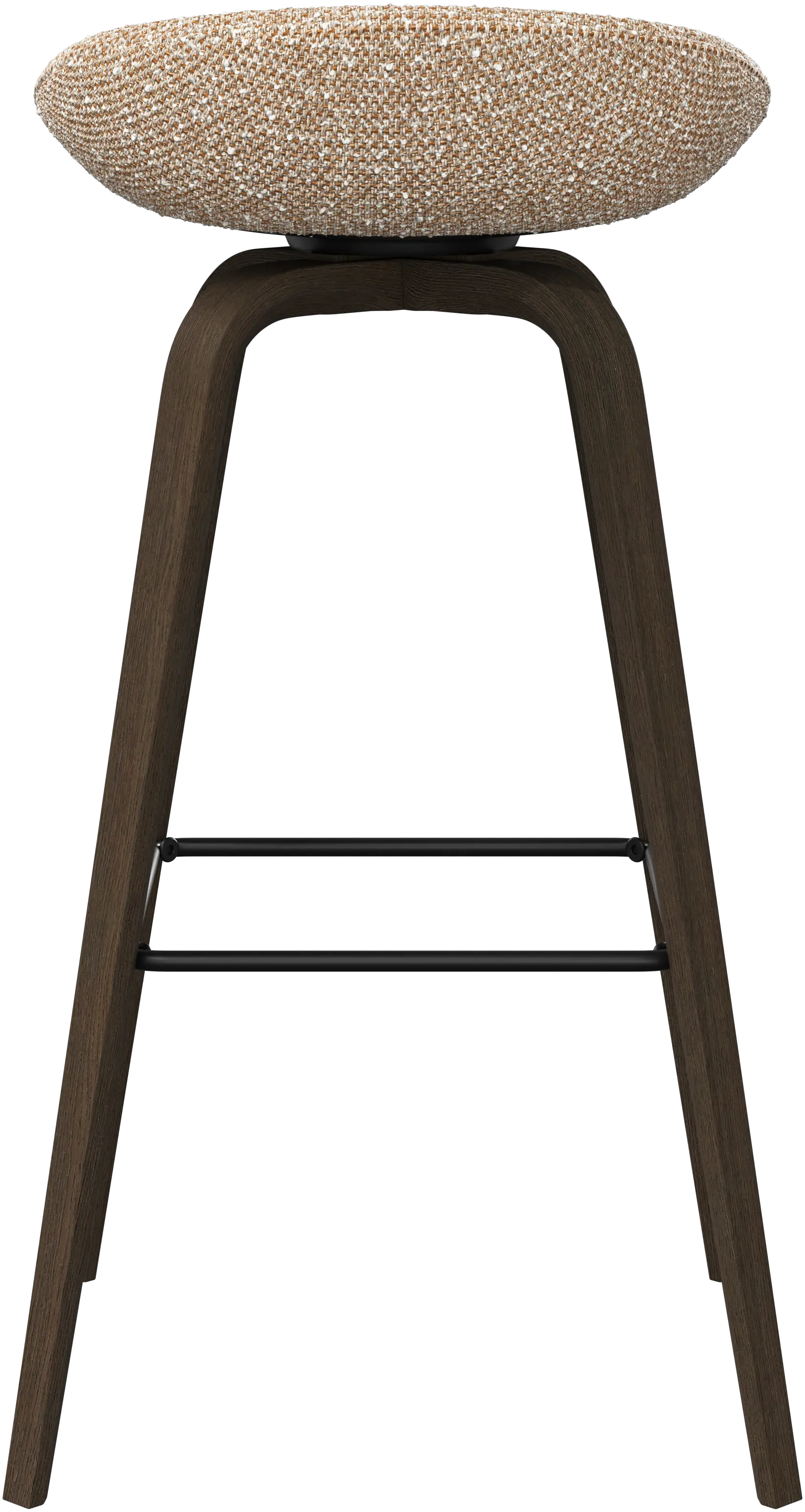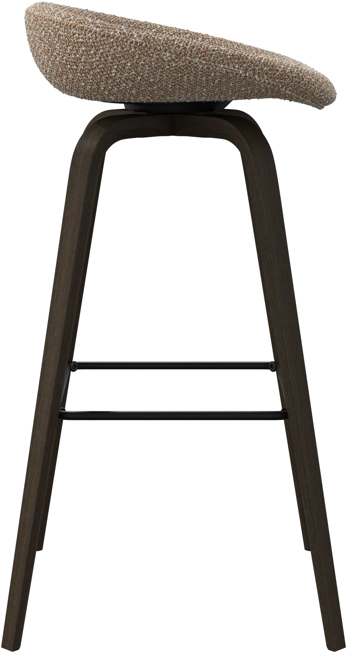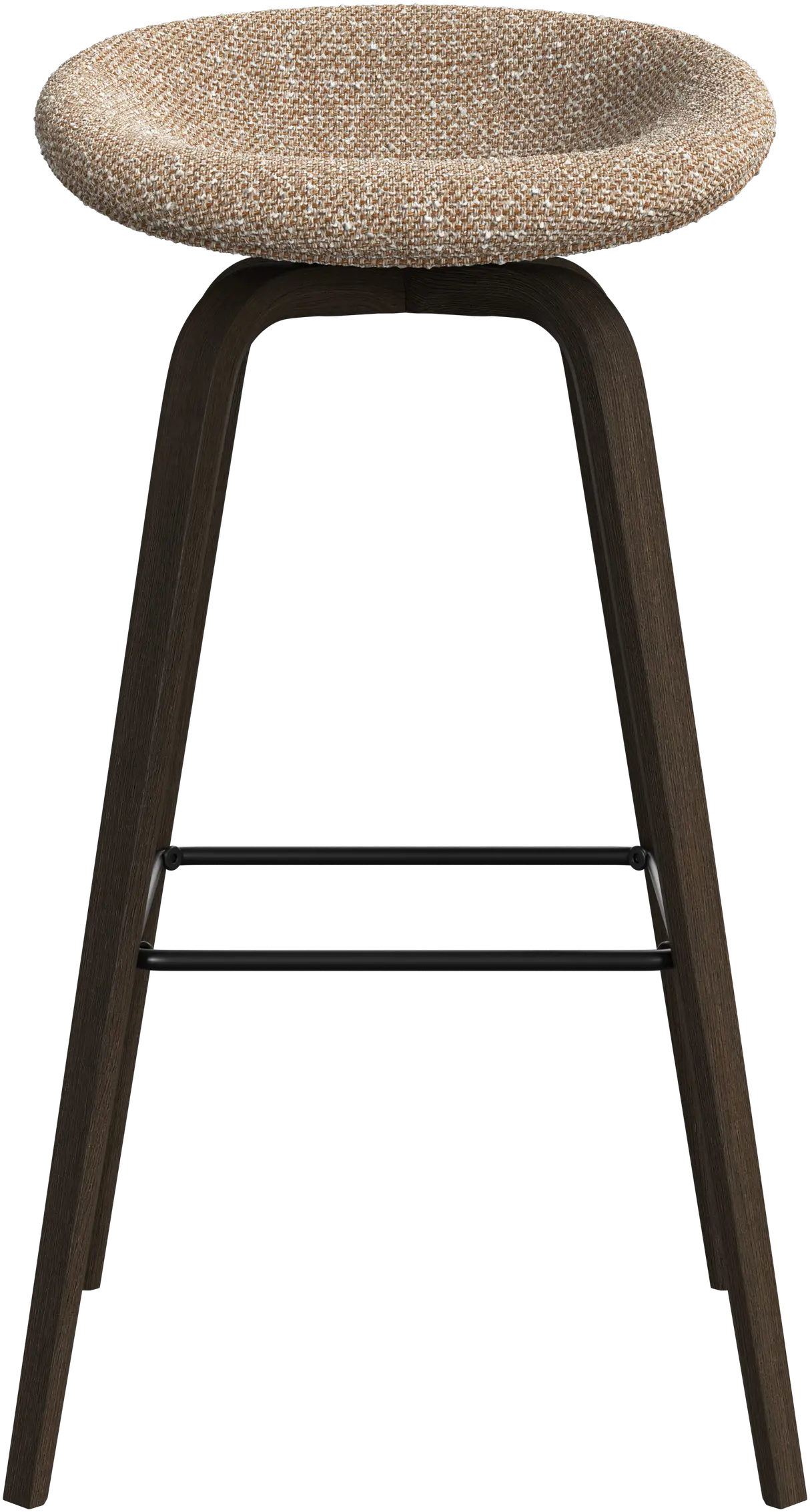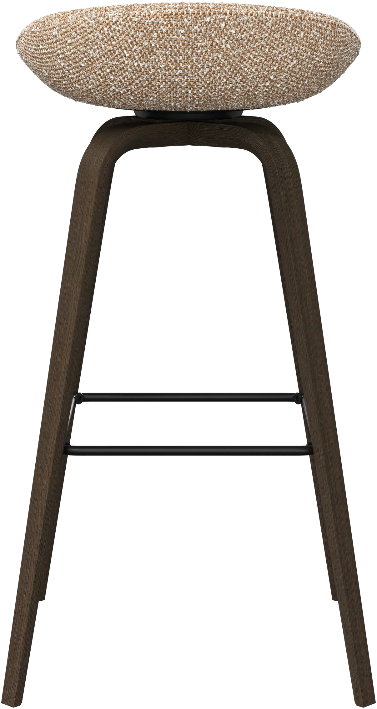 Barová stolička Hauge s měkkým organickým tvarem představuje stylové řešení posezení u baru. Má pevnou výšku, která se hodí do vašeho domácího baru nebo otevřené kuchyně, a kovovou opěrku nohy pro moderní pohodlí.