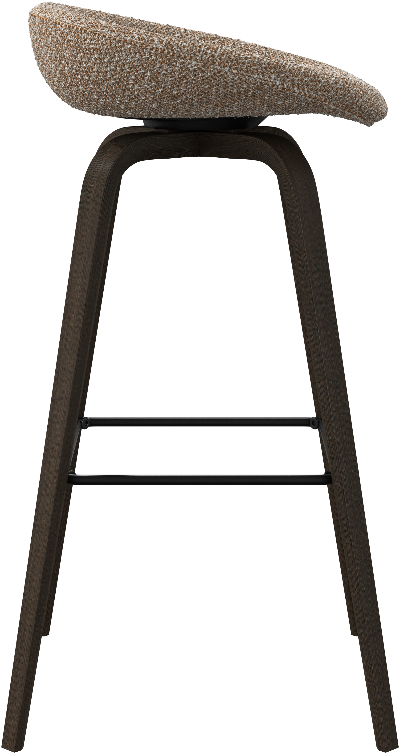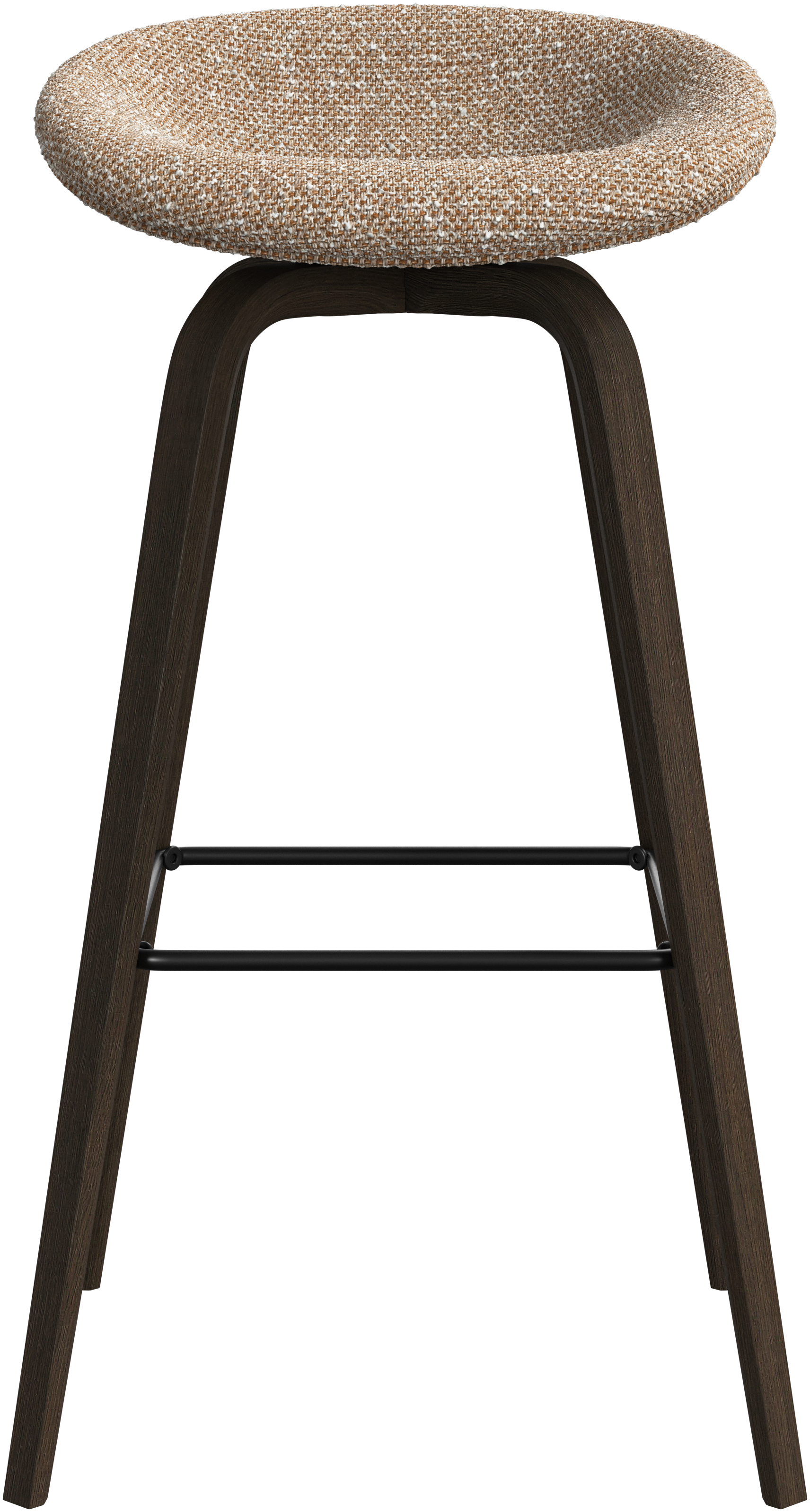 Barová stolička Hauge s měkkým organickým tvarem představuje stylové řešení posezení u baru. Má pevnou výšku, která se hodí do vašeho domácího baru nebo otevřené kuchyně, a kovovou opěrku nohy pro moderní pohodlí.