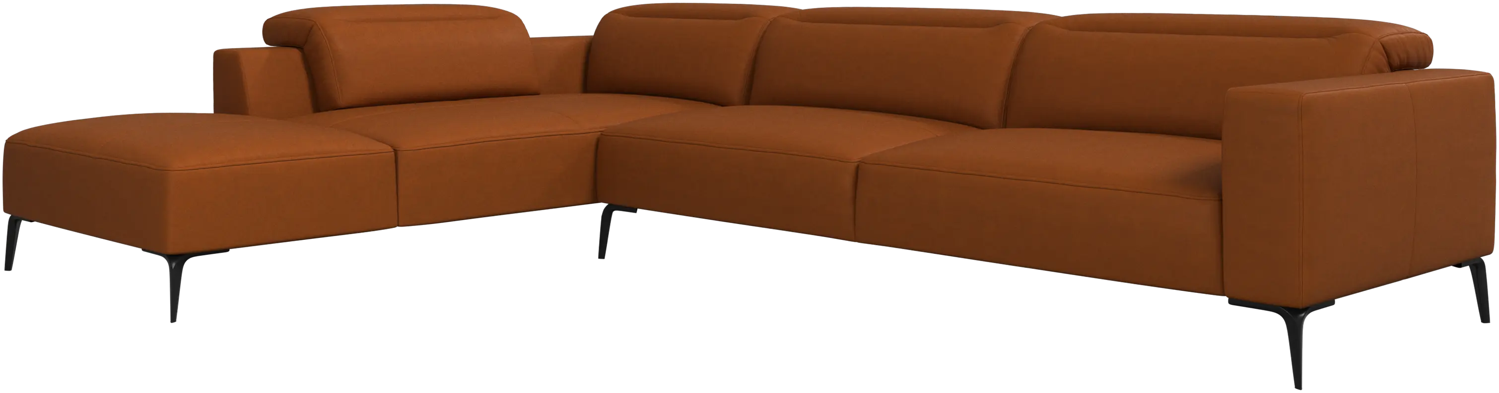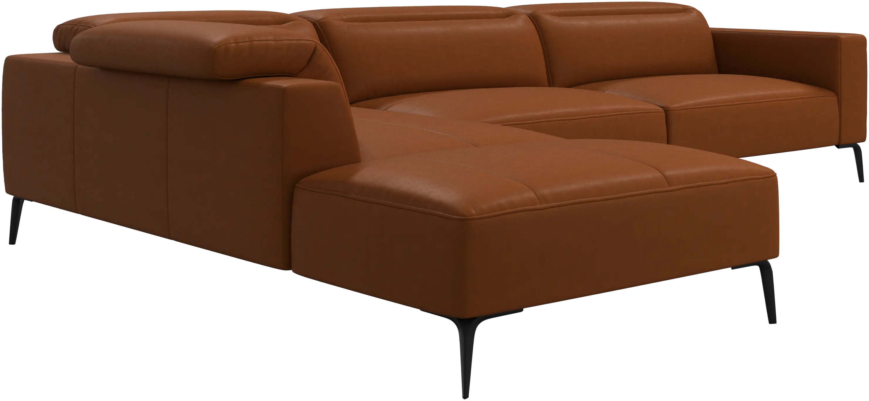 Měkký zaoblený tvar okrajů této pohodlné pohovky v kombinaci s otevřenou základnou zajišťuje lehký a elegantní dojem.