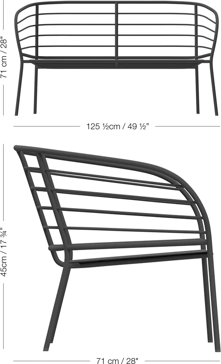 Denne sofa til udendørs brug er fremstillet med letvægts-alu, der gør den nem at flytte.
