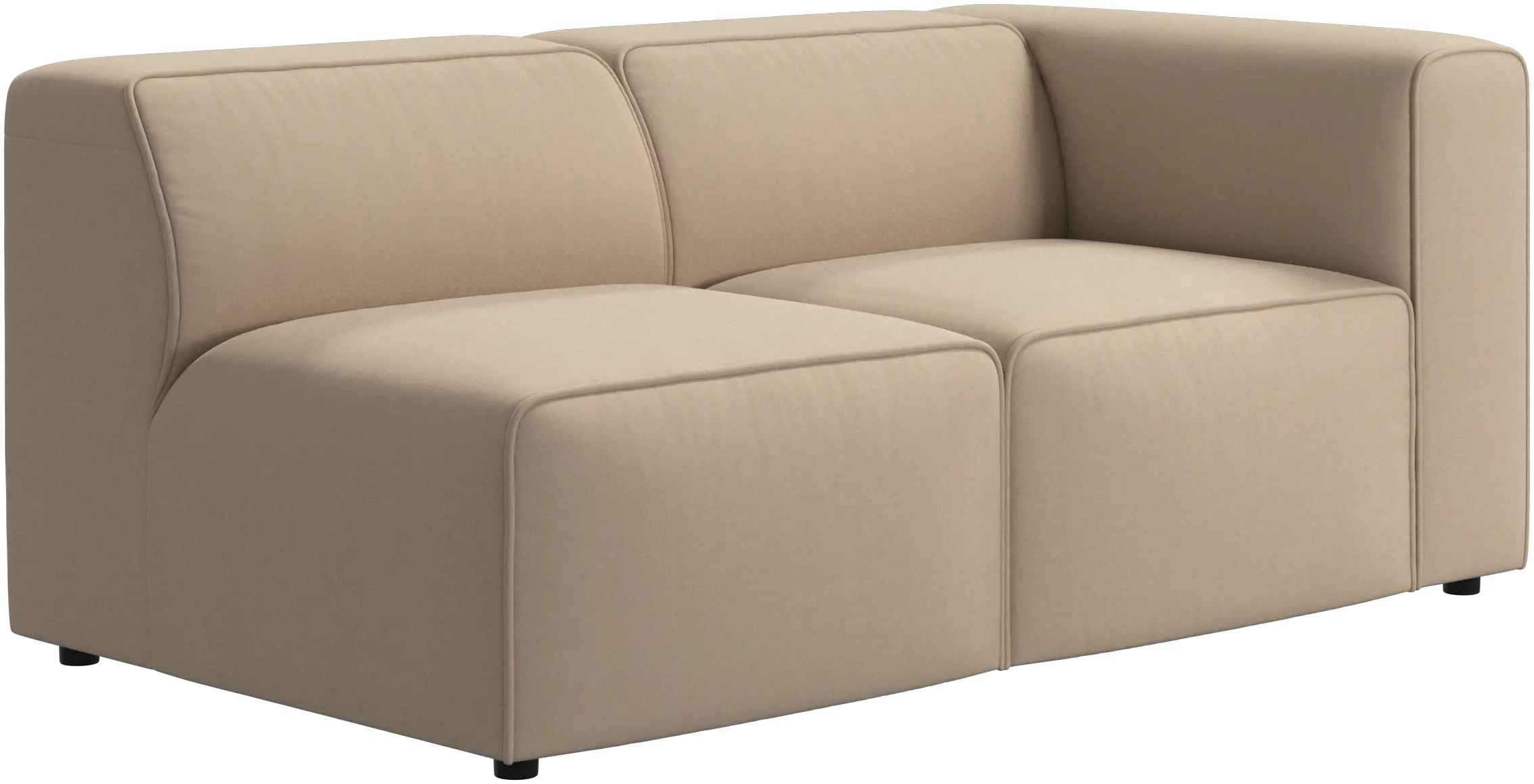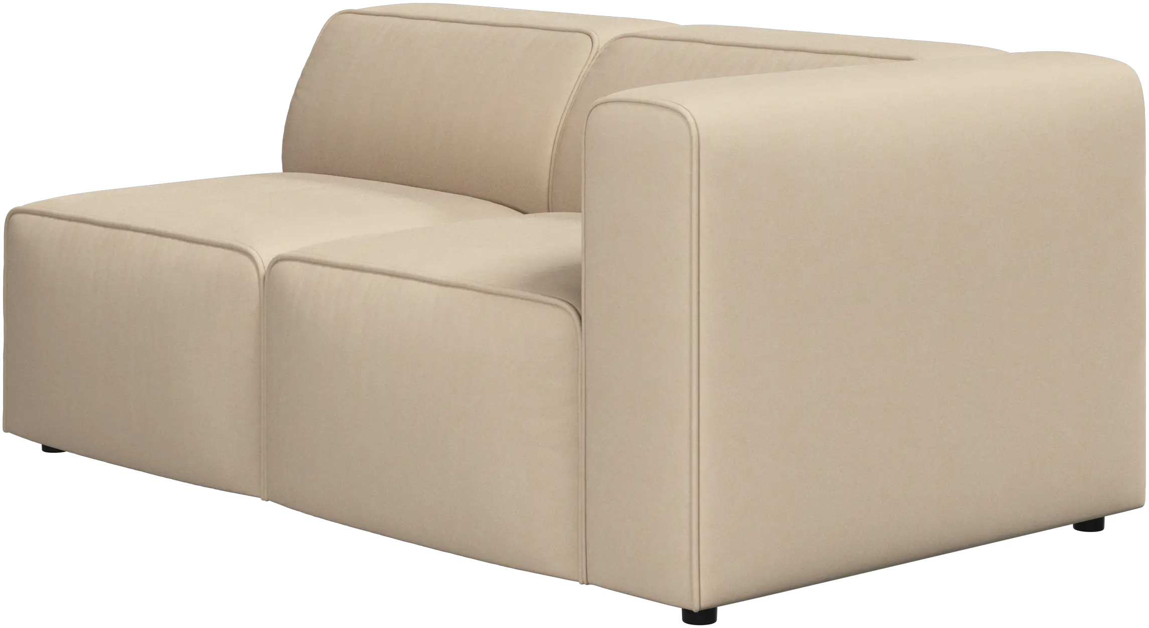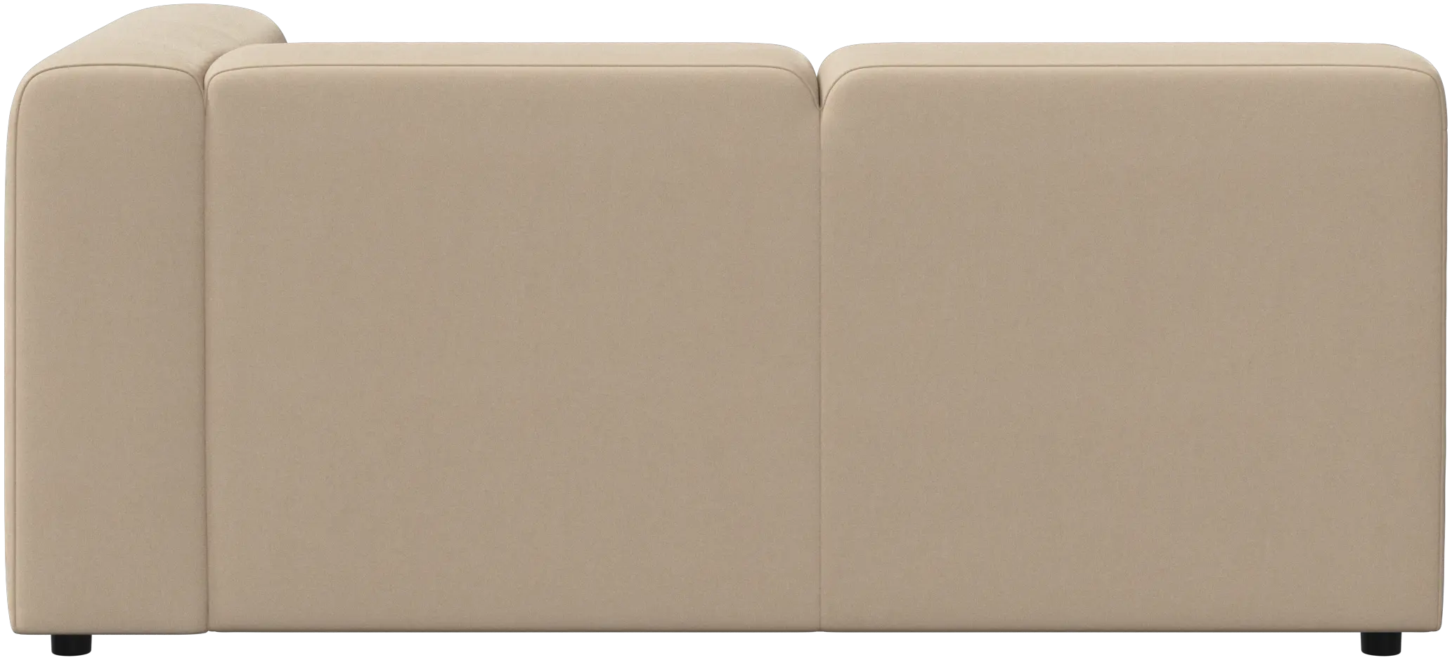 Die niedrige, komfortable Rückenlehne ist genauso hoch wie die Armlehne. Dadurch wird der Komfort zusätzlich verbessert – insbesondere in den Sofaecken.