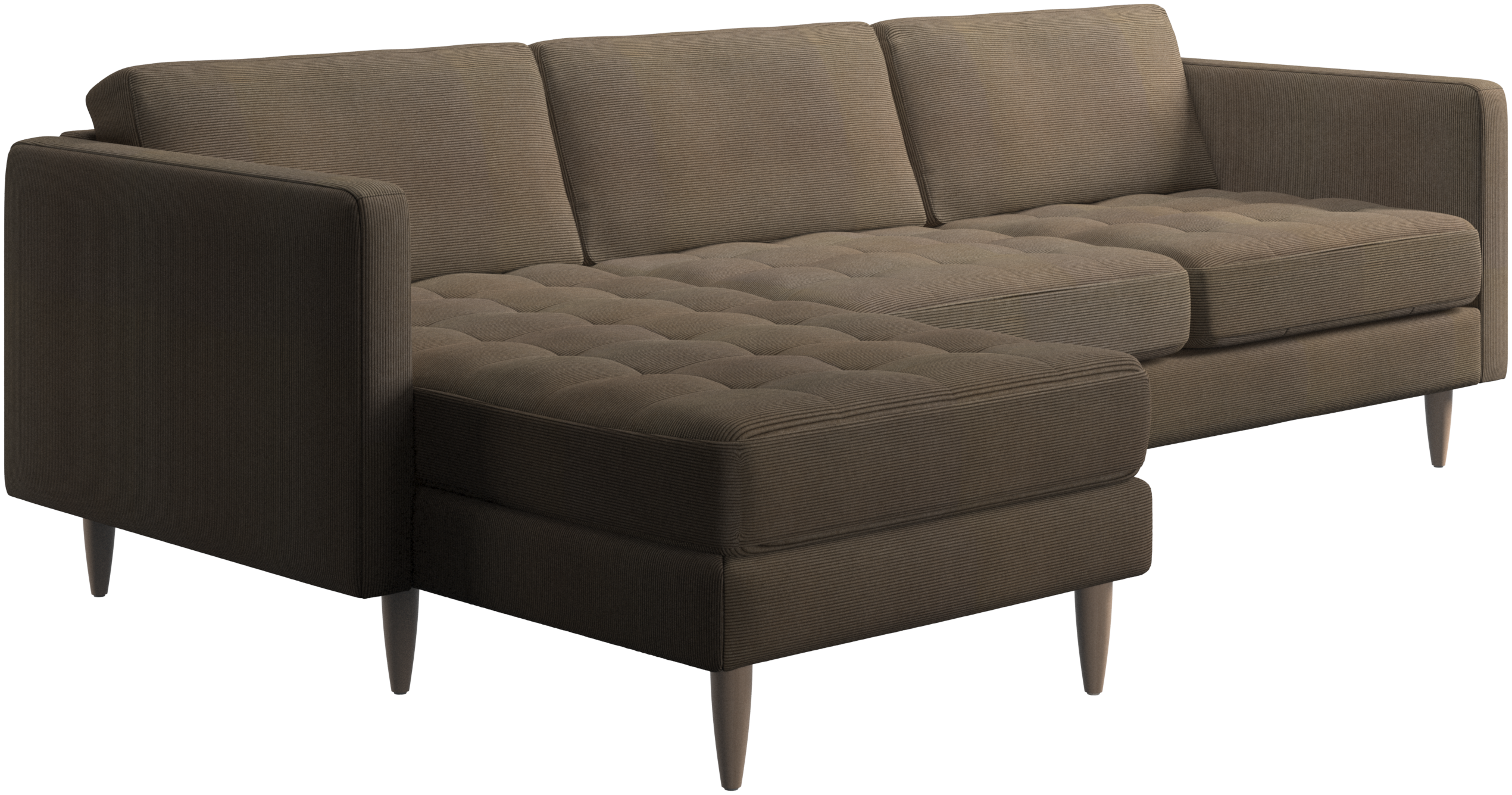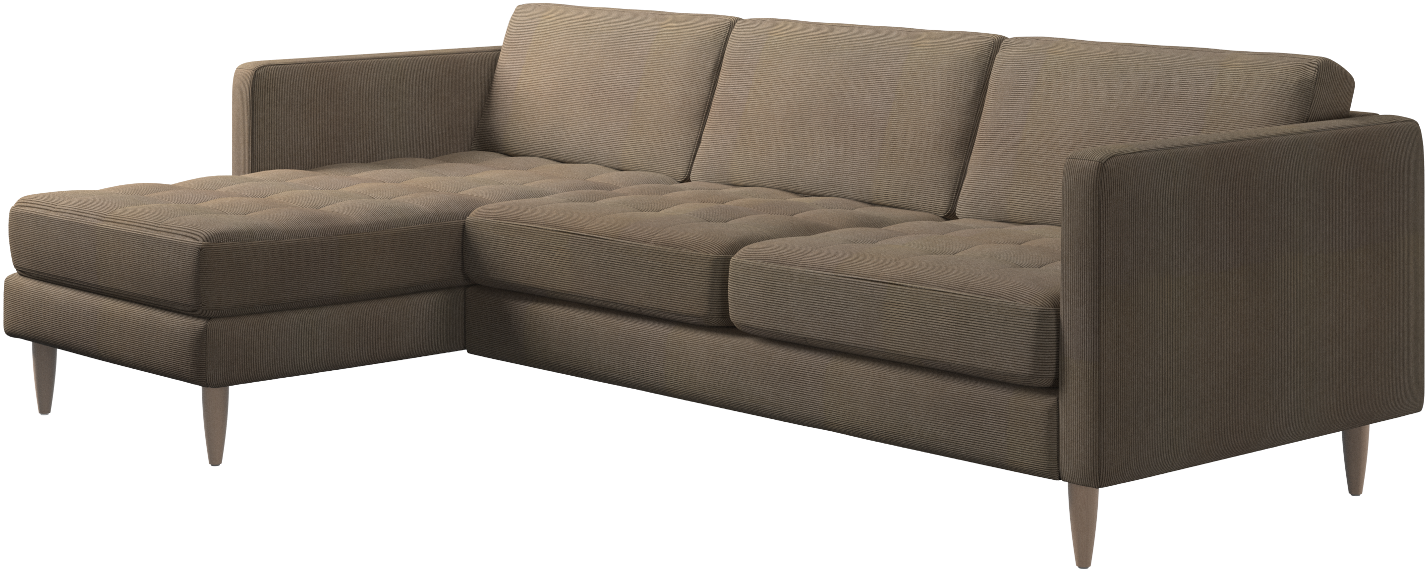 Ein leichter Look und schlanke Proportionen machen das Osaka Sofa zur idealen Wahl für kleine Wohnräume. Gleichzeitig sorgt das feminine, von den 60er Jahren inspirierte Design dafür, dass das Osaka Sofa einen bleibenden Eindruck hinterlassen wird. Die traumhaften, getufteten Sitzflächen erschaffen ein weiches Erscheinungsbild und verleihen Ihrem Wohnzimmer ein klassisches Design. Die klassischen senkrechten Armlehnen betonen die klaren Linien und das skandinavische Design. Legen Sie die Füße hoch, strecken Sie sich aus oder nutzen Sie die zusätzliche Sitzgelegenheit – die Entscheidung für dieses komfortable Sofa mit Récamiere werden Sie nicht bereuen.