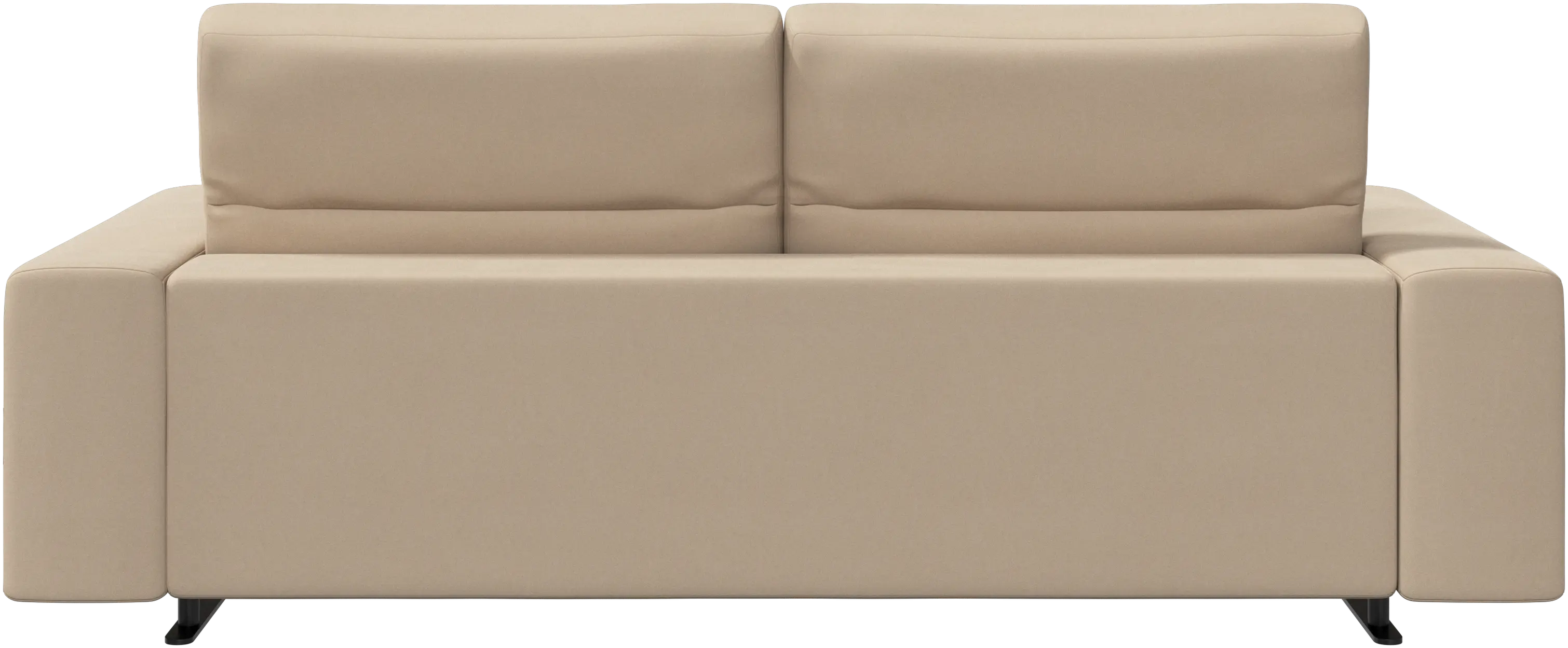 Mit einer Sitztiefe von 107 cm ist das Sofa breit genug, um bequem darauf zu schlafen. Damit der Rücken trotz der großen Sitztiefe optimal abgestützt wird, sind ein Lordose-Stützkissen und ein Zierkissen mit passenden Stoff- und Lederbezügen erhältlich.