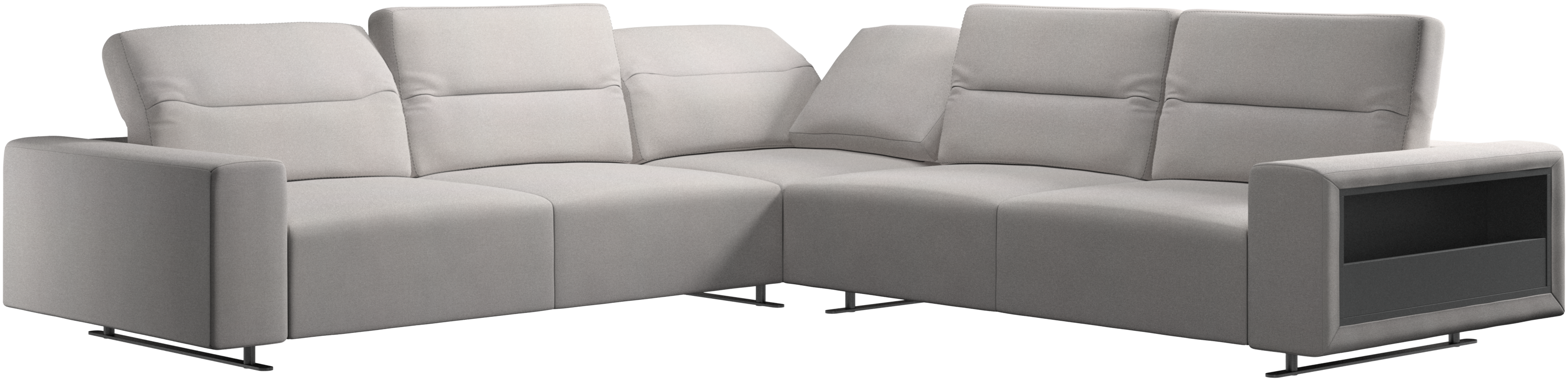 Sie haben vollkommen recht. Es ist schön. Aber in dem modernen Hampton Sofa steckt mehr als nur gutes Aussehen. Eine niedrige Sitzfläche, ein atemberaubender Loft-Look sowie verstellbare Rückenlehnen für mehr Komfort und Ausdrucksstärke – das Hampton Sofa ist ein perfekter persönlicher Rückzugsort. Legen Sie die Füße hoch, strecken Sie sich aus oder nutzen Sie die zusätzliche Sitzgelegenheit – die Entscheidung für dieses komfortable Sofa mit Récamiere werden Sie nicht bereuen. Und dank der durchdachten integrierten Fächer in der Armlehne haben Sie alles Wichtige stets zur Hand.