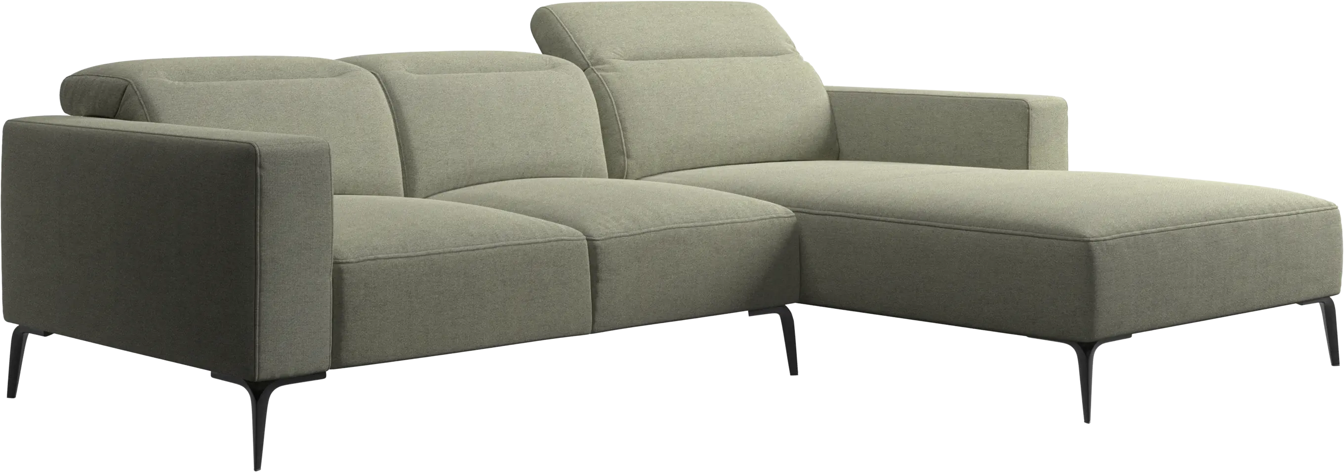 Die weiche, abgerundete Form der Sofakanten sorgt zusammen mit einer offenen Basis für einen leichten und eleganten Look des bequemen Sofas.