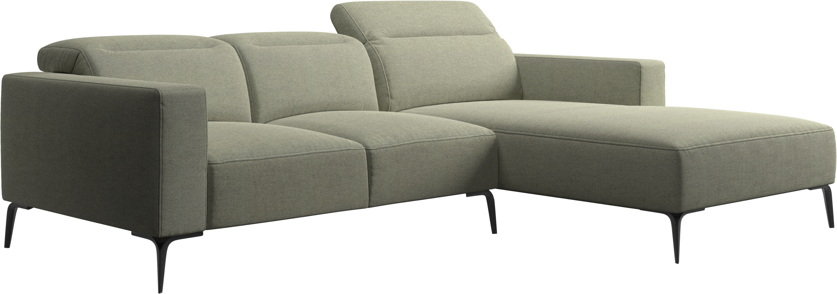 Die weiche, abgerundete Form der Sofakanten sorgt zusammen mit einer offenen Basis für einen leichten und eleganten Look des bequemen Sofas.