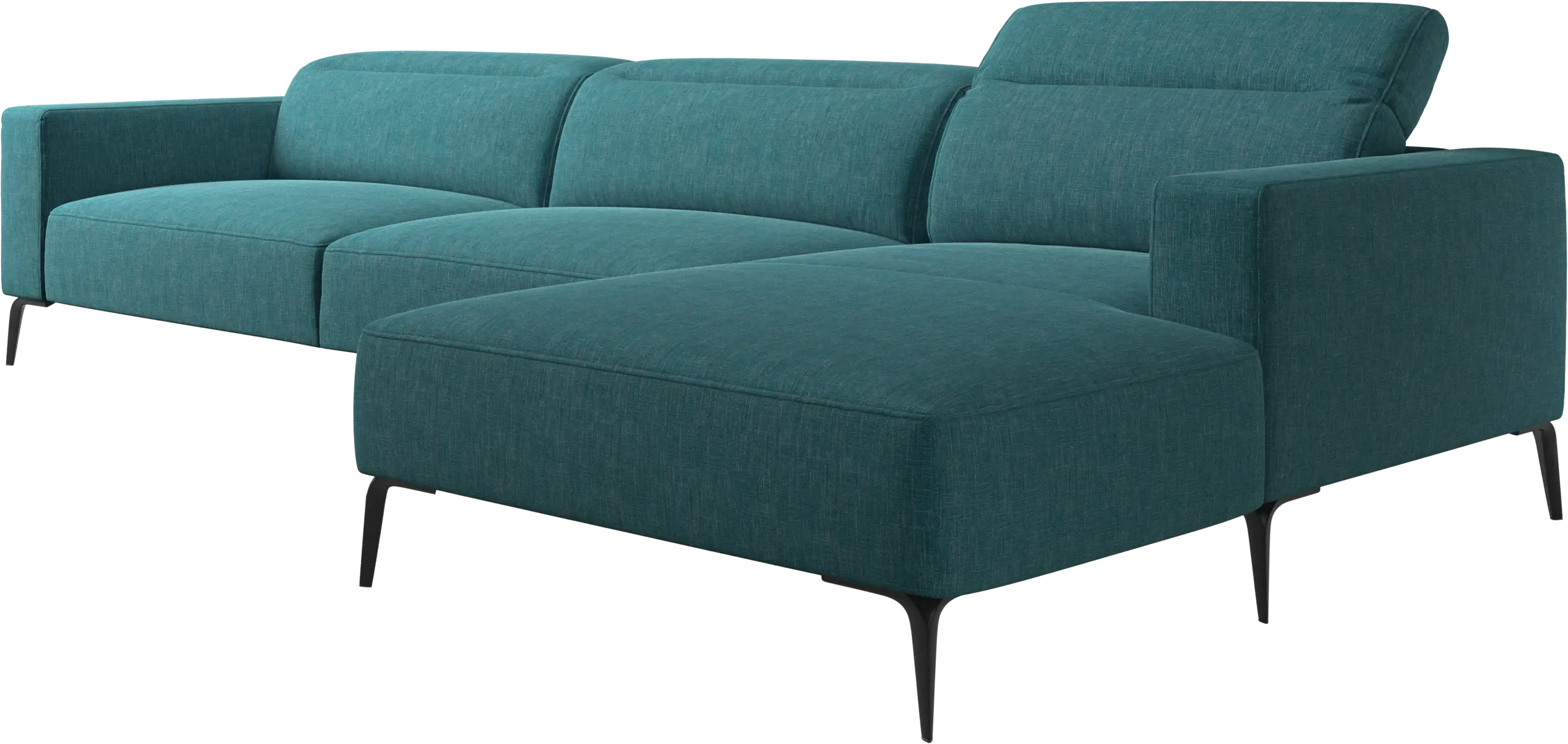 Die weiche, abgerundete Form der Sofakanten sorgt zusammen mit einer offenen Basis für einen leichten und eleganten Look des bequemen Sofas.