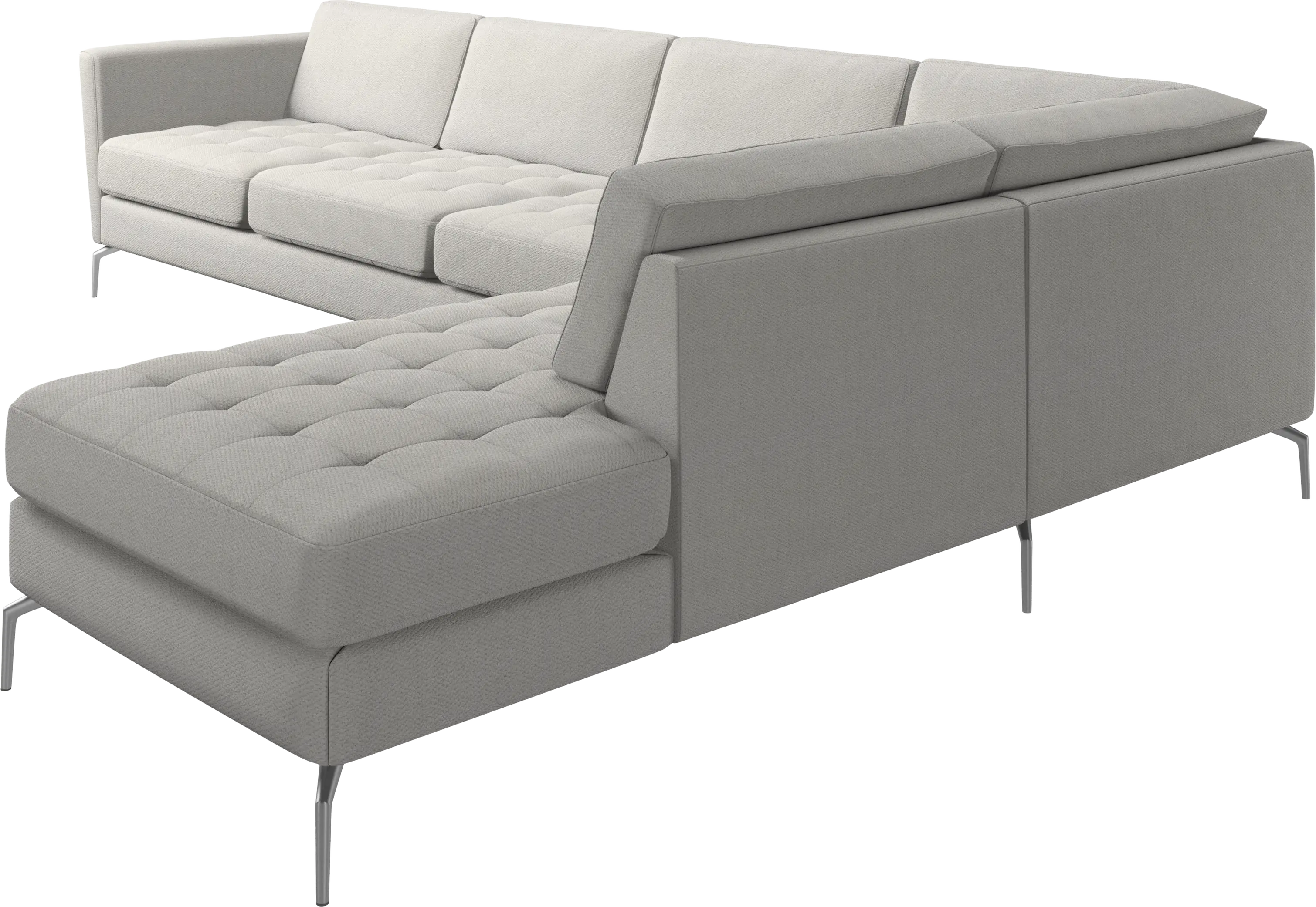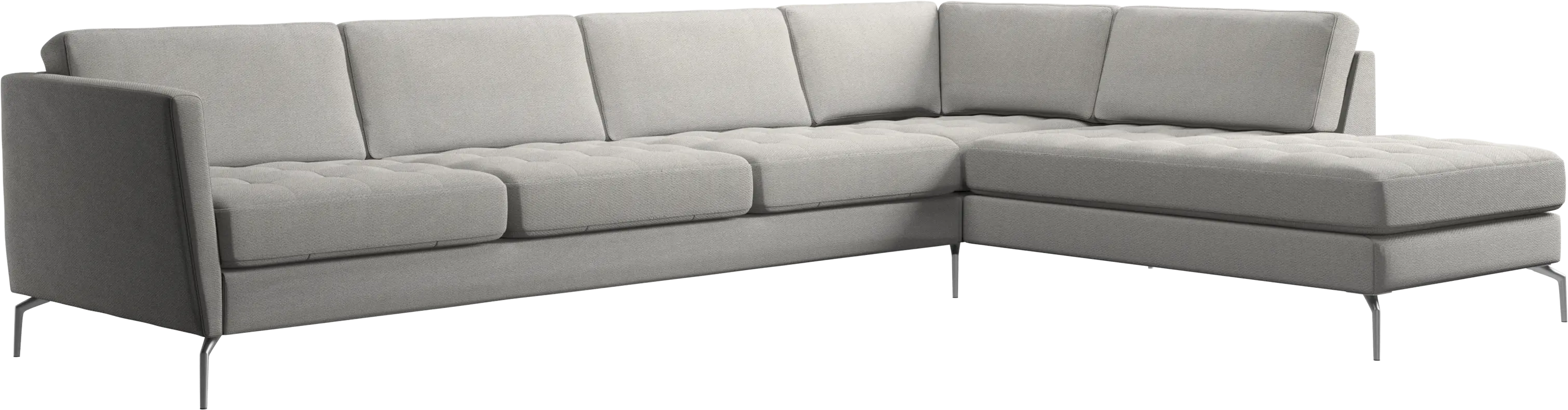 Ein leichter Look und schlanke Proportionen machen das Osaka Sofa zur idealen Wahl für kleine Wohnräume. Gleichzeitig sorgt das feminine, von den 60er Jahren inspirierte Design dafür, dass das Osaka Sofa einen bleibenden Eindruck hinterlassen wird. Die traumhaften, getufteten Sitzflächen erschaffen ein weiches Erscheinungsbild und verleihen Ihrem Wohnzimmer ein klassisches Design. Die geneigten Armlehnen kreieren einen modernen, unverwechselbaren Look und tragen optisch dazu bei, dass sich das Sofa in den Raum öffnet. Dieses Ecksofa bietet ausreichend Platz für die ganze Familie und wird zweifelsohne alle Herzen im Sturm erobern. Das offene Ende des Lounge Sofas erschafft eine dynamische, einladende Atmosphäre – ein wahres Geschenk für das Design von offenen Wohnbereichen.