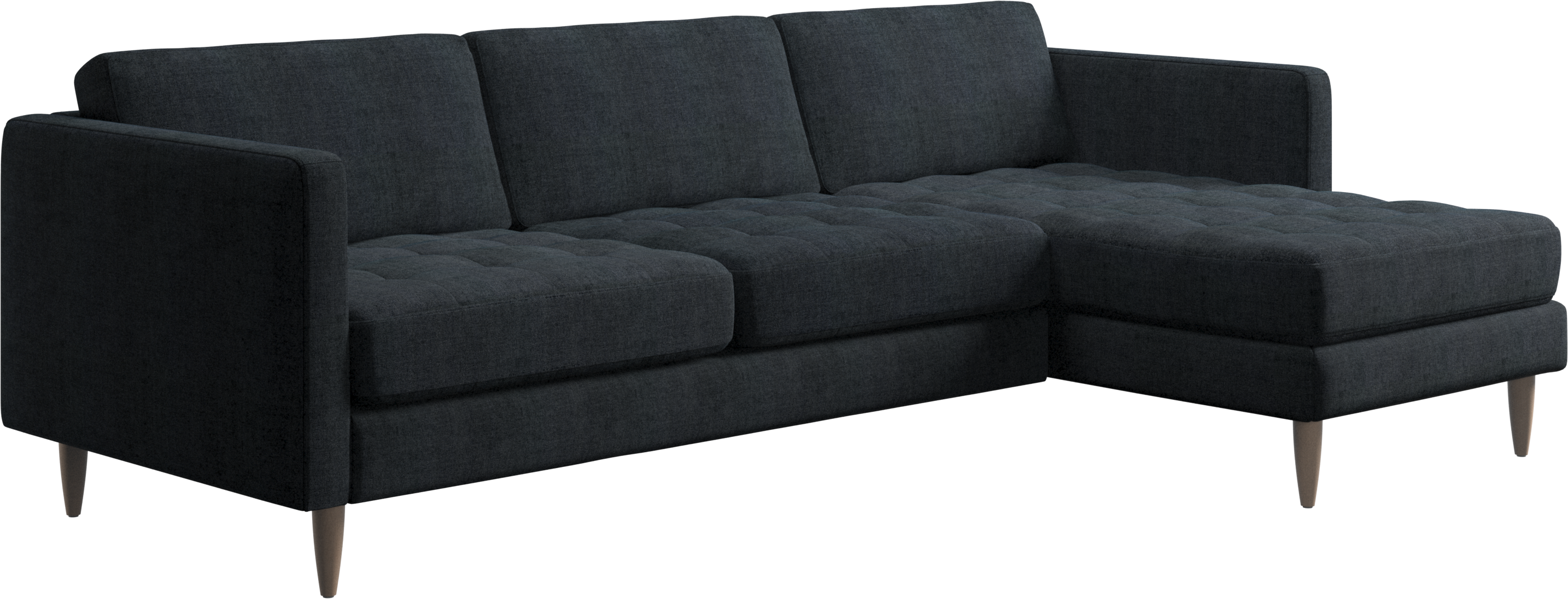 Ein leichter Look und schlanke Proportionen machen das Osaka Sofa zur idealen Wahl für kleine Wohnräume. Gleichzeitig sorgt das feminine, von den 60er Jahren inspirierte Design dafür, dass das Osaka Sofa einen bleibenden Eindruck hinterlassen wird. Die traumhaften, getufteten Sitzflächen erschaffen ein weiches Erscheinungsbild und verleihen Ihrem Wohnzimmer ein klassisches Design. Die klassischen senkrechten Armlehnen betonen die klaren Linien und das skandinavische Design. Legen Sie die Füße hoch, strecken Sie sich aus oder nutzen Sie die zusätzliche Sitzgelegenheit – die Entscheidung für dieses komfortable Sofa mit Récamiere werden Sie nicht bereuen.