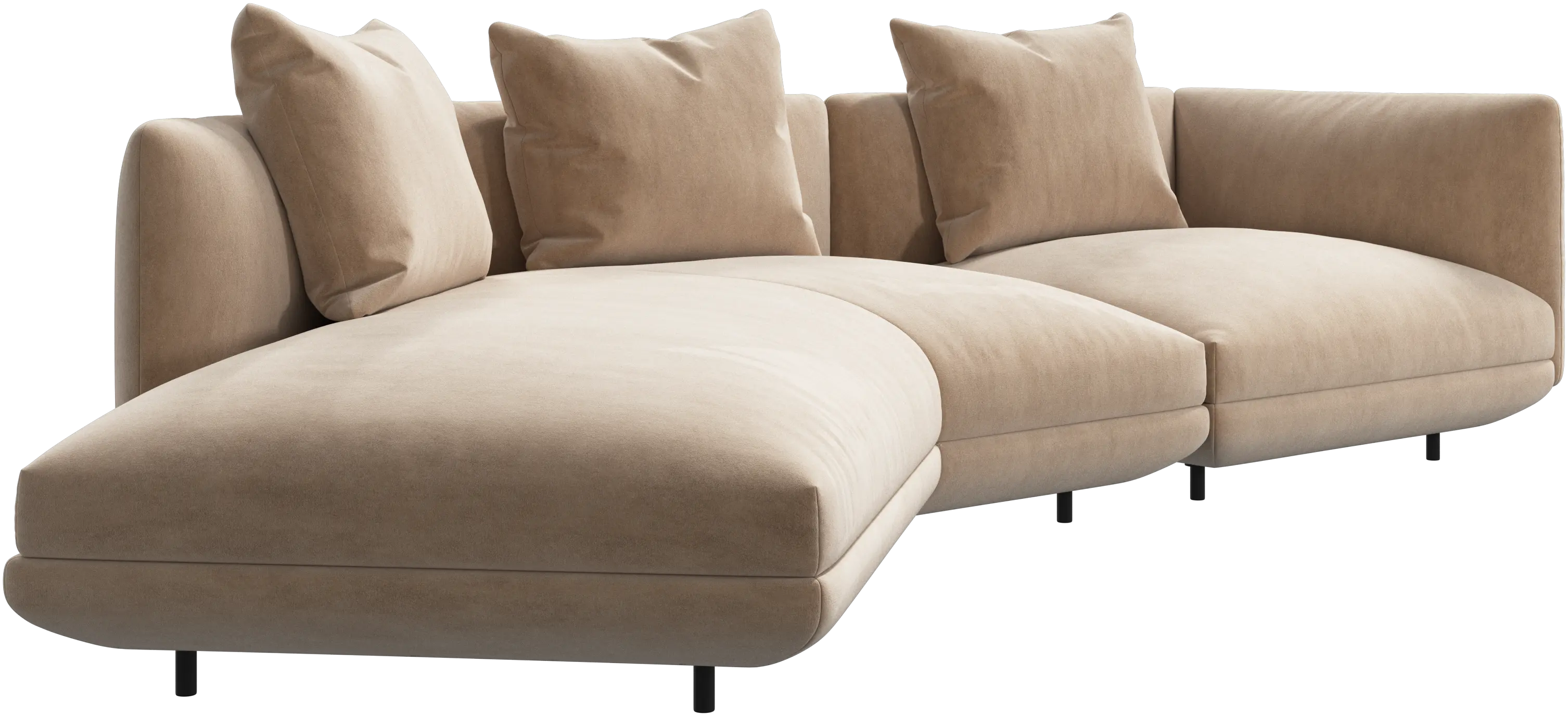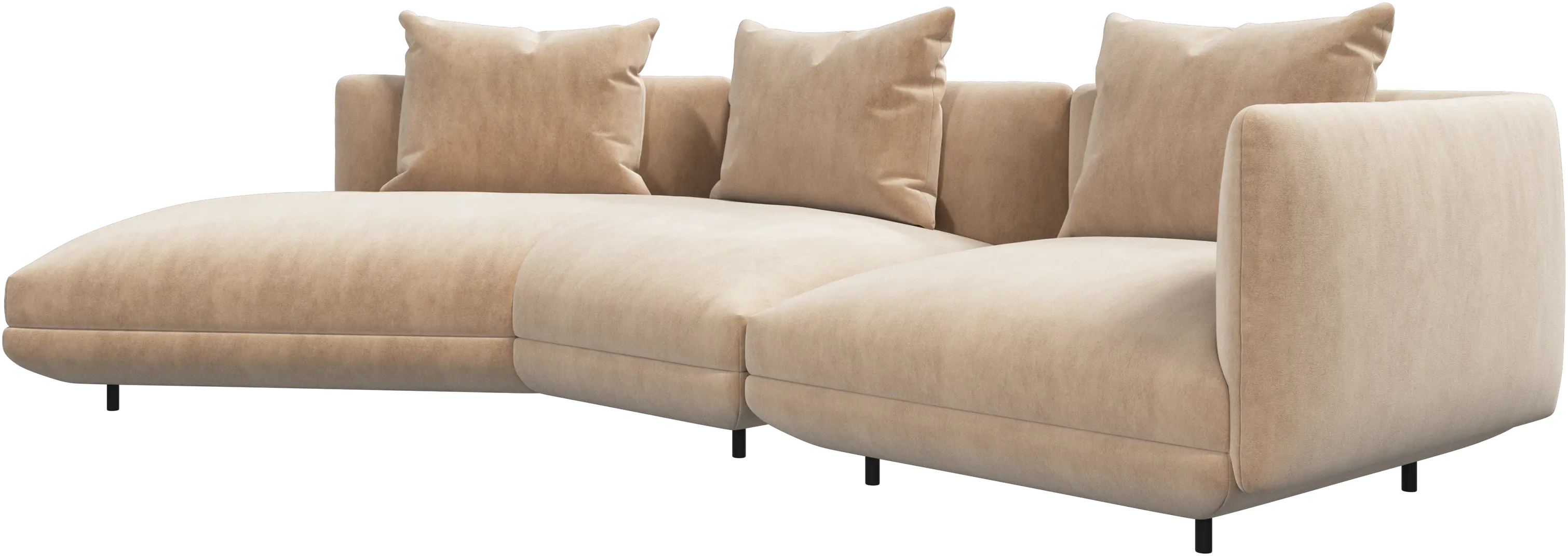 Salamanca zeichnet sich durch großzügige Proportionen und weiche Kurven aus, die durch schmale, dezente schwarze röhrenförmige Beine betont werden, um einen niedrigen, 'schwebenden' Ausdruck zu schaffen.