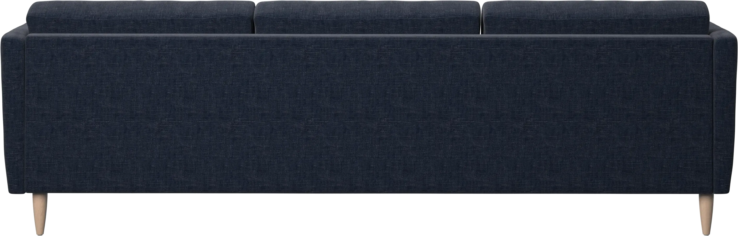 Die Sitzkissen sind mit Klettband befestigt, sodass sie nicht verrutschen können. Außerdem verhindert das Klettband, dass sich die Vorderkanten der Sitzkissen nach oben wölben, wenn man in der Mitte sitzt. Durch dieses kleine, aber wichtige Detail bleibt das Design stets perfekt in Form – und es ist ganz einfach möglich, unter den Kissen staubzusaugen.