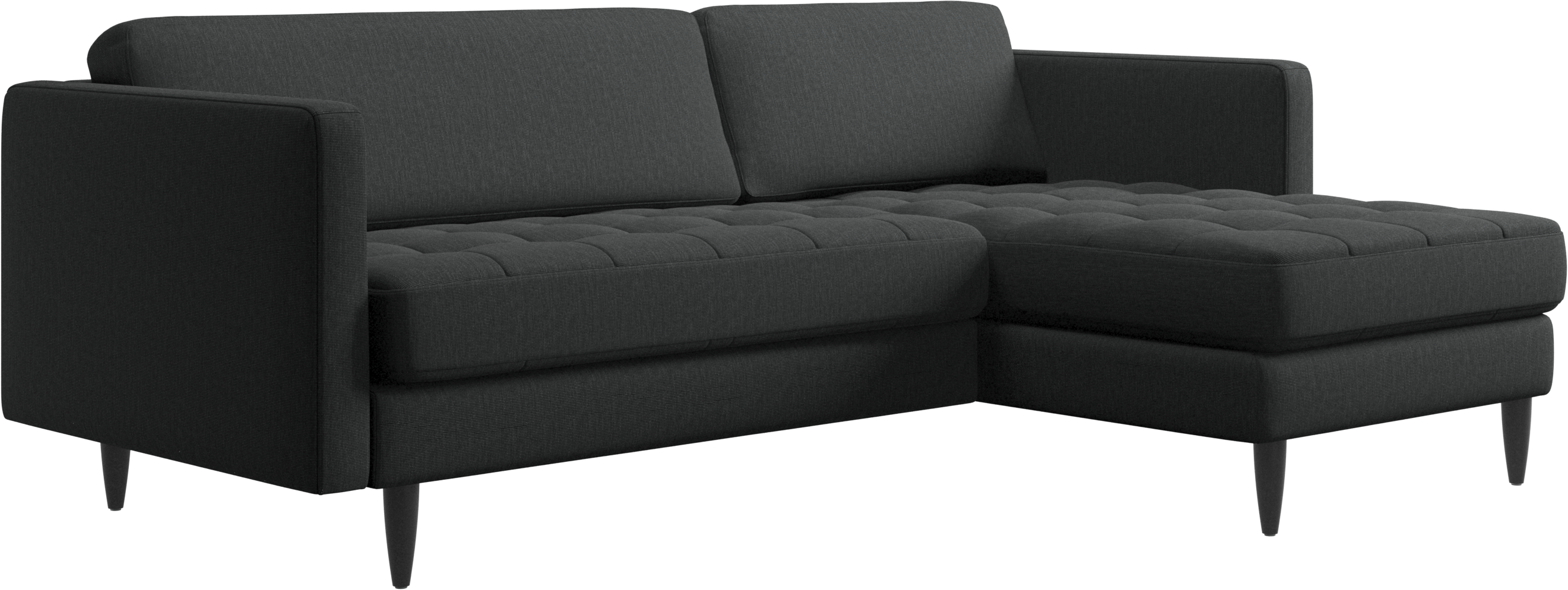 Ein leichter Look und schlanke Proportionen machen das Osaka Sofa zur idealen Wahl für kleine Wohnräume. Gleichzeitig sorgt das feminine, von den 60er Jahren inspirierte Design dafür, dass das Osaka Sofa einen bleibenden Eindruck hinterlassen wird. Die traumhaften, getufteten Sitzflächen erschaffen ein weiches Erscheinungsbild und verleihen Ihrem Wohnzimmer ein klassisches Design. Die klassischen senkrechten Armlehnen betonen die klaren Linien und das skandinavische Design. Legen Sie die Füße hoch, strecken Sie sich aus oder nutzen Sie die zusätzliche Sitzgelegenheit – die Entscheidung für dieses komfortable Sofa mit Récamiere werden Sie nicht bereuen.
