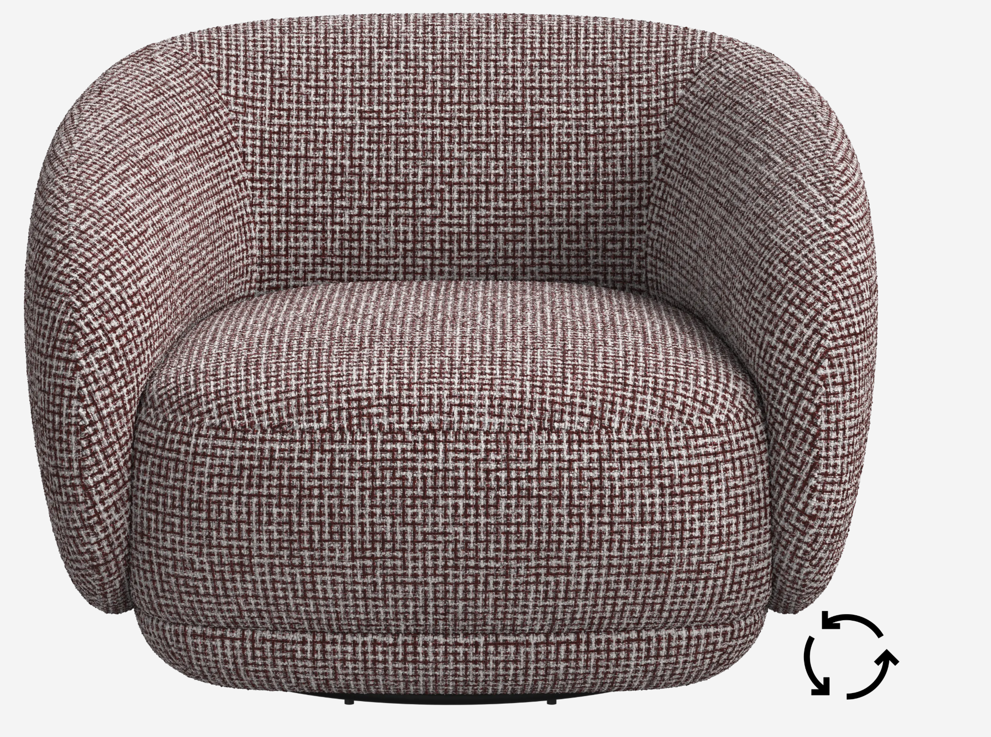 Charakteristisch für den Bolzano Sessel ist seine abgerundete Armlehne, die über die gesamte Rückenlehne verläuft, und die gebogene Frontblende, dank derer sich die geschwungene Form um 360° fortsetzt.