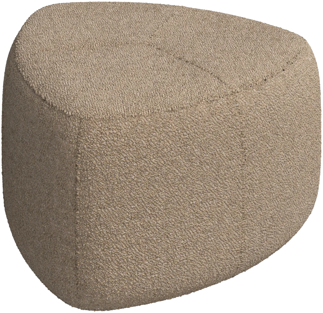 Die organische Form und Ziernähte verleihen dem Design etwas Aufregendes, das Ihren Raum bereichern wird. Dank der kolbenartigen Form kann auf jeder Ecke des Hockers jemand Platz nehmen, ohne dass man sich mit den Beinen in die Quere kommt.