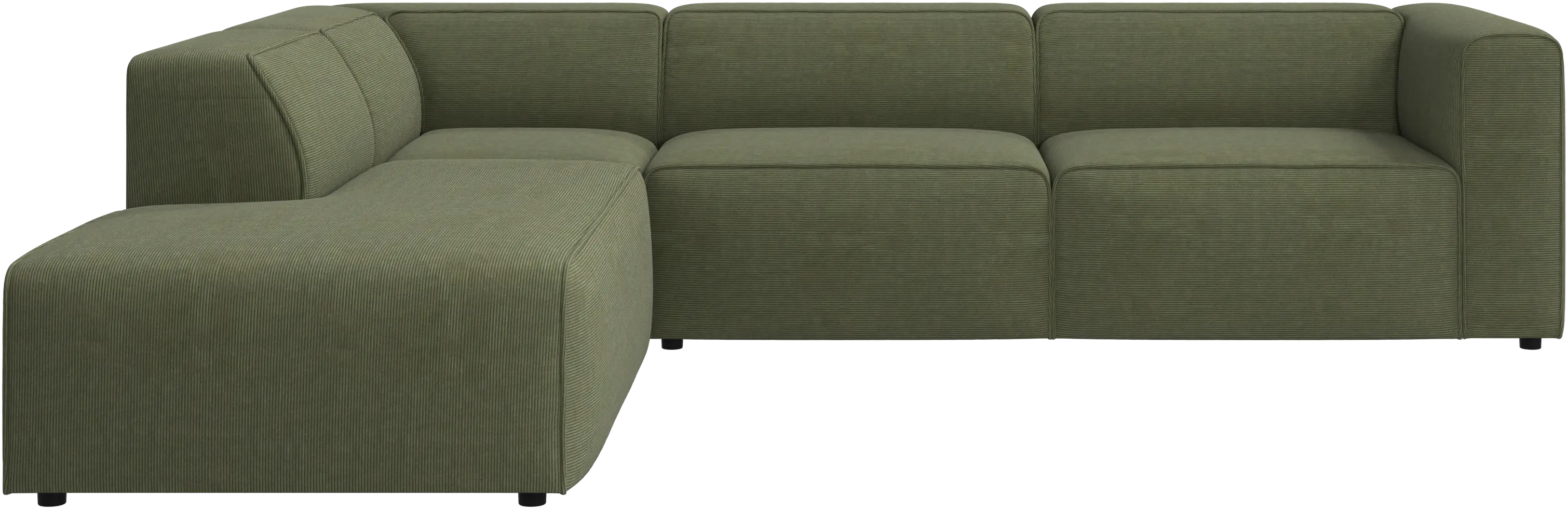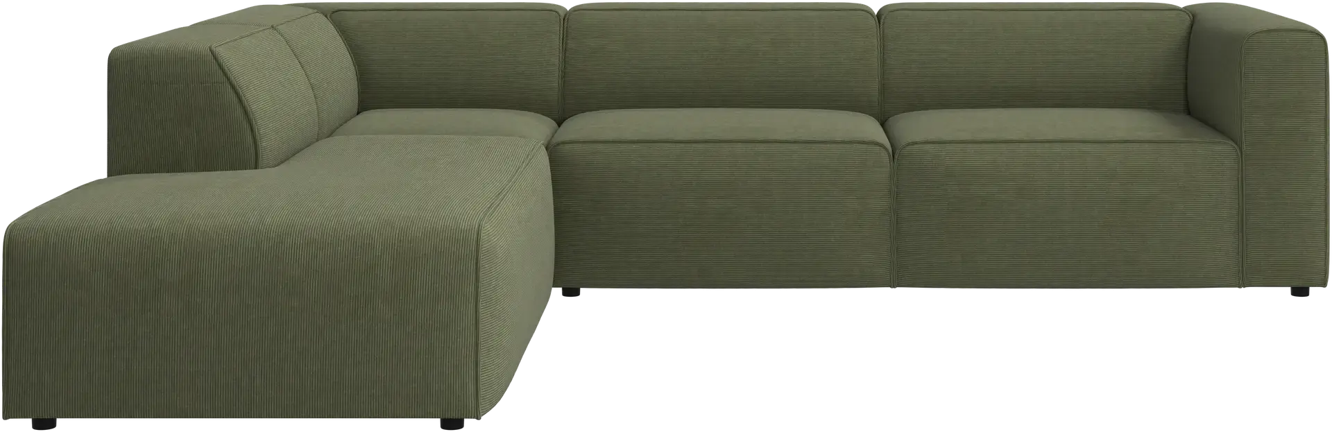 Die niedrige, komfortable Rückenlehne ist genauso hoch wie die Armlehne. Dadurch wird der Komfort zusätzlich verbessert – insbesondere in den Sofaecken.