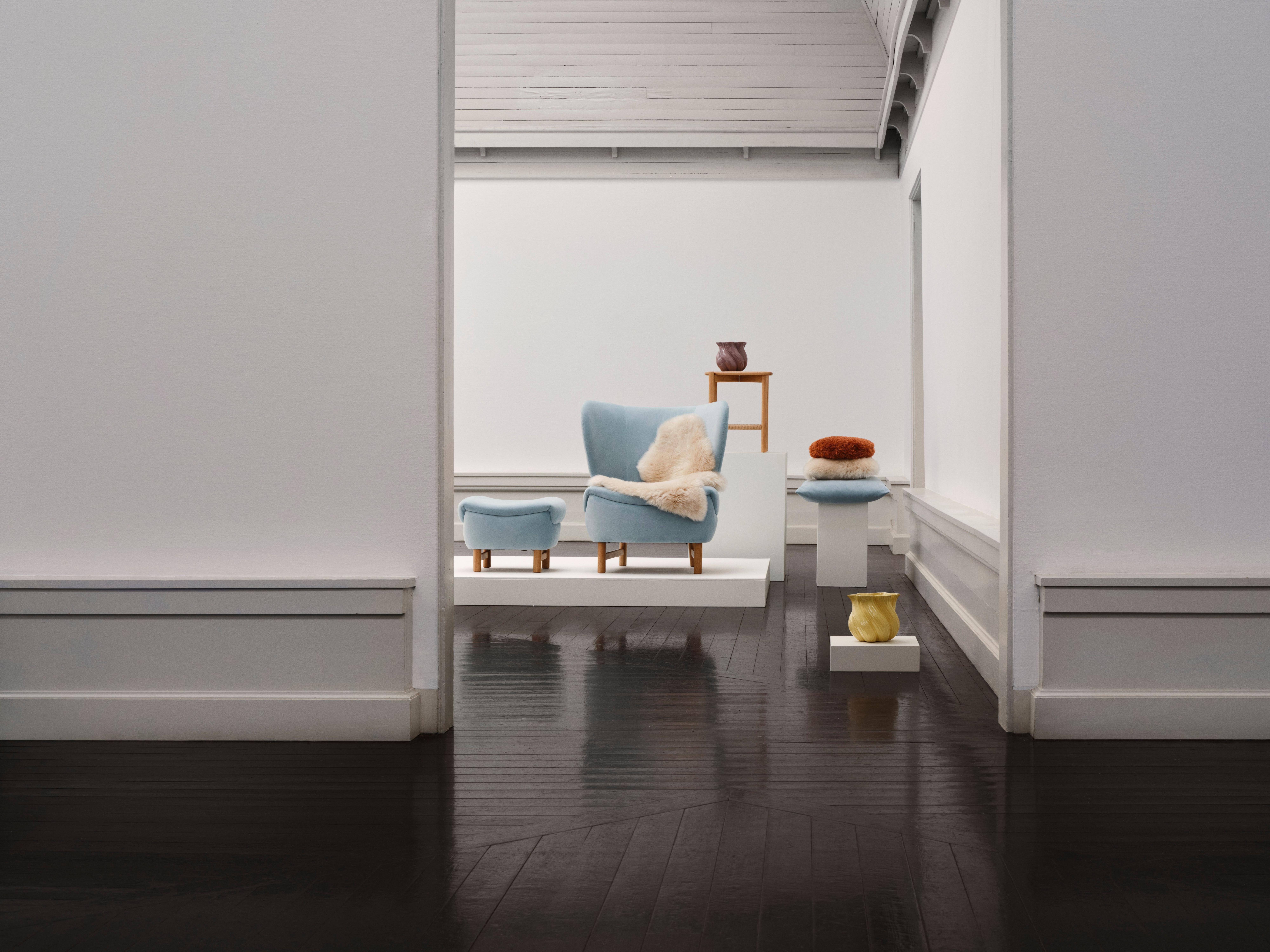 Das Schafsleder wurde im Rahmen der Catskills-Kollektion von Helena Christensen ausgewählt und ergänzt die haptische, umhüllende Ästhetik der Serie.