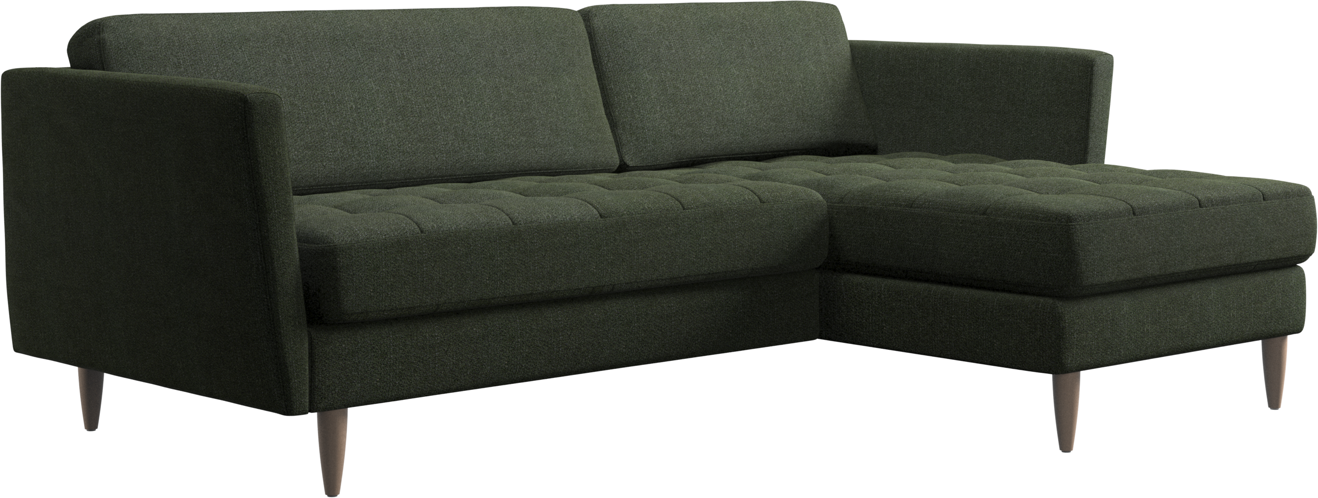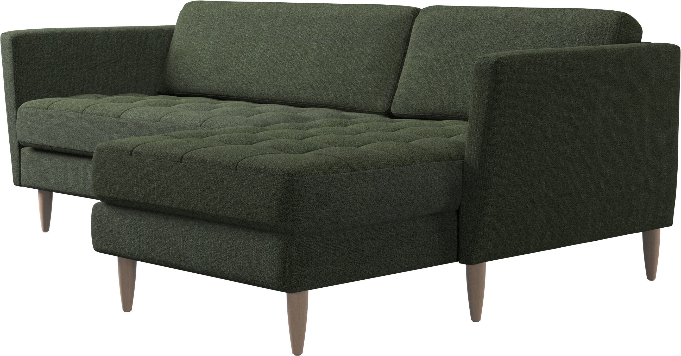 Ein leichter Look und schlanke Proportionen machen das Osaka Sofa zur idealen Wahl für kleine Wohnräume. Gleichzeitig sorgt das feminine, von den 60er Jahren inspirierte Design dafür, dass das Osaka Sofa einen bleibenden Eindruck hinterlassen wird. Die traumhaften, getufteten Sitzflächen erschaffen ein weiches Erscheinungsbild und verleihen Ihrem Wohnzimmer ein klassisches Design. Die geneigten Armlehnen kreieren einen modernen, unverwechselbaren Look und tragen optisch dazu bei, dass sich das Sofa in den Raum öffnet. Legen Sie die Füße hoch, strecken Sie sich aus oder nutzen Sie die zusätzliche Sitzgelegenheit – die Entscheidung für dieses komfortable Sofa mit Récamiere werden Sie nicht bereuen.