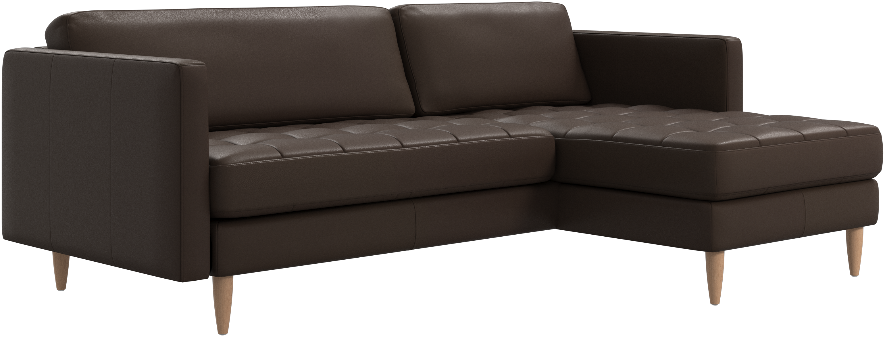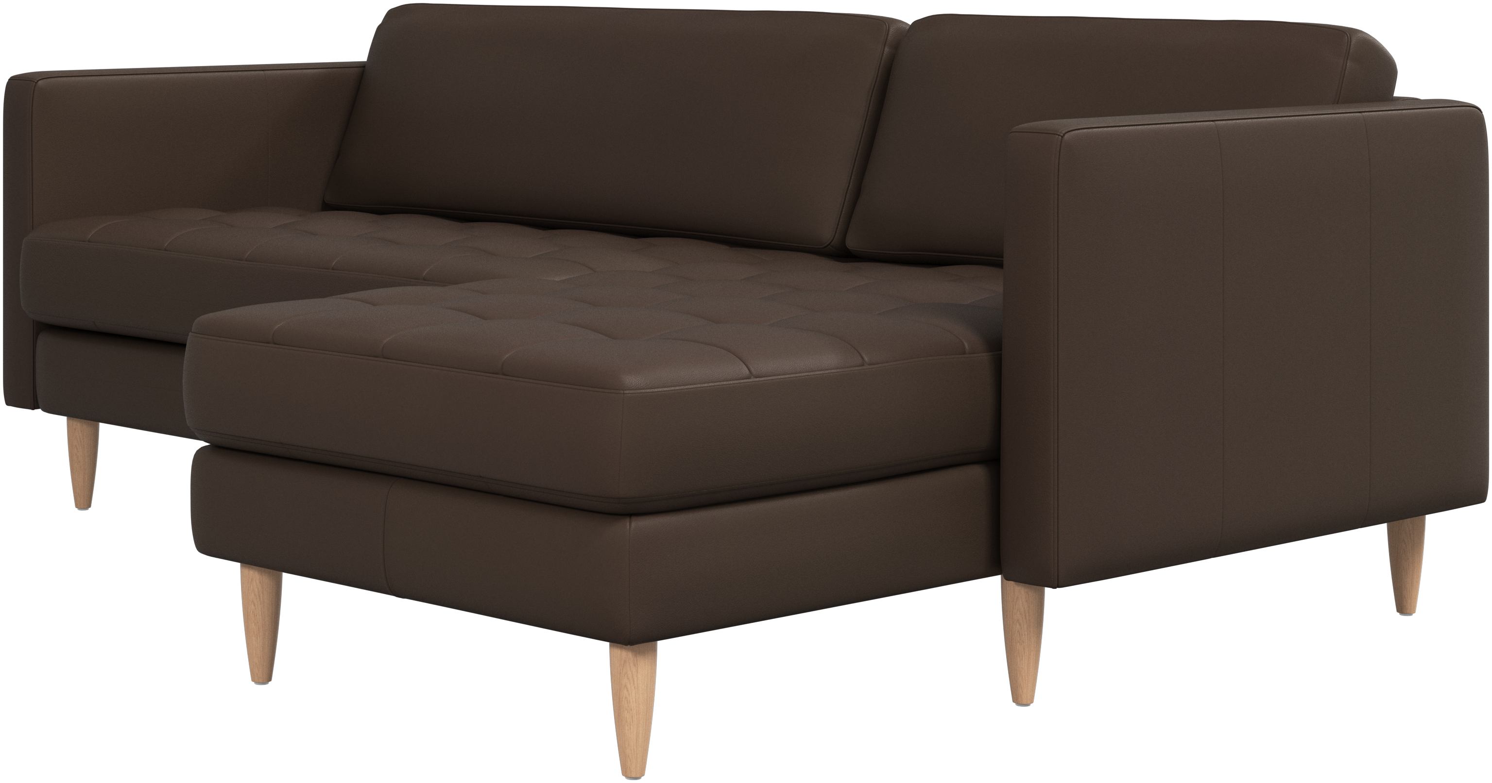 Ein leichter Look und schlanke Proportionen machen das Osaka Sofa zur idealen Wahl für kleine Wohnräume. Gleichzeitig sorgt das feminine, von den 60er Jahren inspirierte Design dafür, dass das Osaka Sofa einen bleibenden Eindruck hinterlassen wird. Die traumhaften, getufteten Sitzflächen erschaffen ein weiches Erscheinungsbild und verleihen Ihrem Wohnzimmer ein klassisches Design. Die klassischen senkrechten Armlehnen betonen die klaren Linien und das skandinavische Design. Legen Sie die Füße hoch, strecken Sie sich aus oder nutzen Sie die zusätzliche Sitzgelegenheit – die Entscheidung für dieses komfortable Sofa mit Récamiere werden Sie nicht bereuen.
