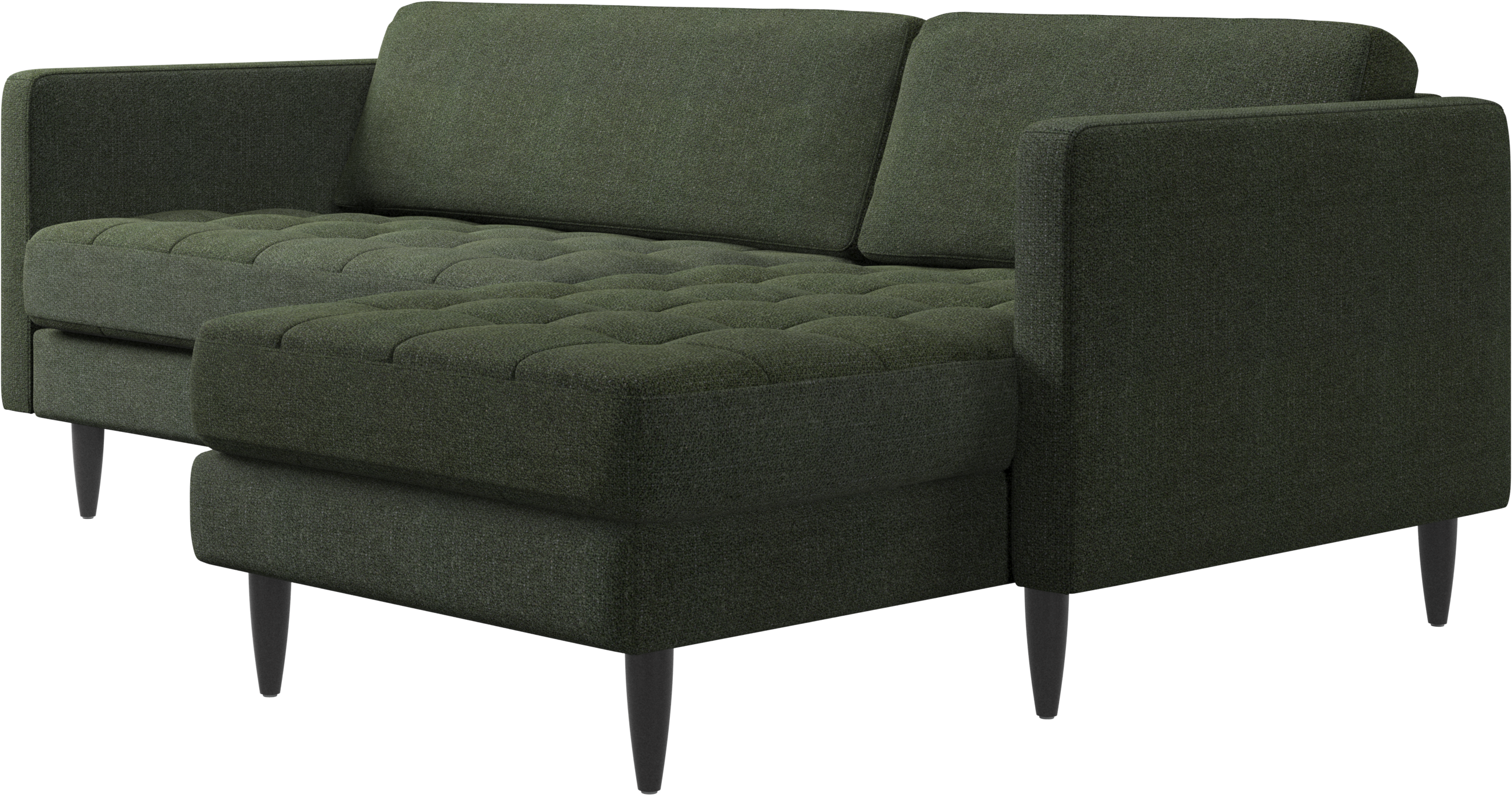 Ein leichter Look und schlanke Proportionen machen das Osaka Sofa zur idealen Wahl für kleine Wohnräume. Gleichzeitig sorgt das feminine, von den 60er Jahren inspirierte Design dafür, dass das Osaka Sofa einen bleibenden Eindruck hinterlassen wird. Die traumhaften, getufteten Sitzflächen erschaffen ein weiches Erscheinungsbild und verleihen Ihrem Wohnzimmer ein klassisches Design. Die klassischen senkrechten Armlehnen betonen die klaren Linien und das skandinavische Design. Legen Sie die Füße hoch, strecken Sie sich aus oder nutzen Sie die zusätzliche Sitzgelegenheit – die Entscheidung für dieses komfortable Sofa mit Récamiere werden Sie nicht bereuen.