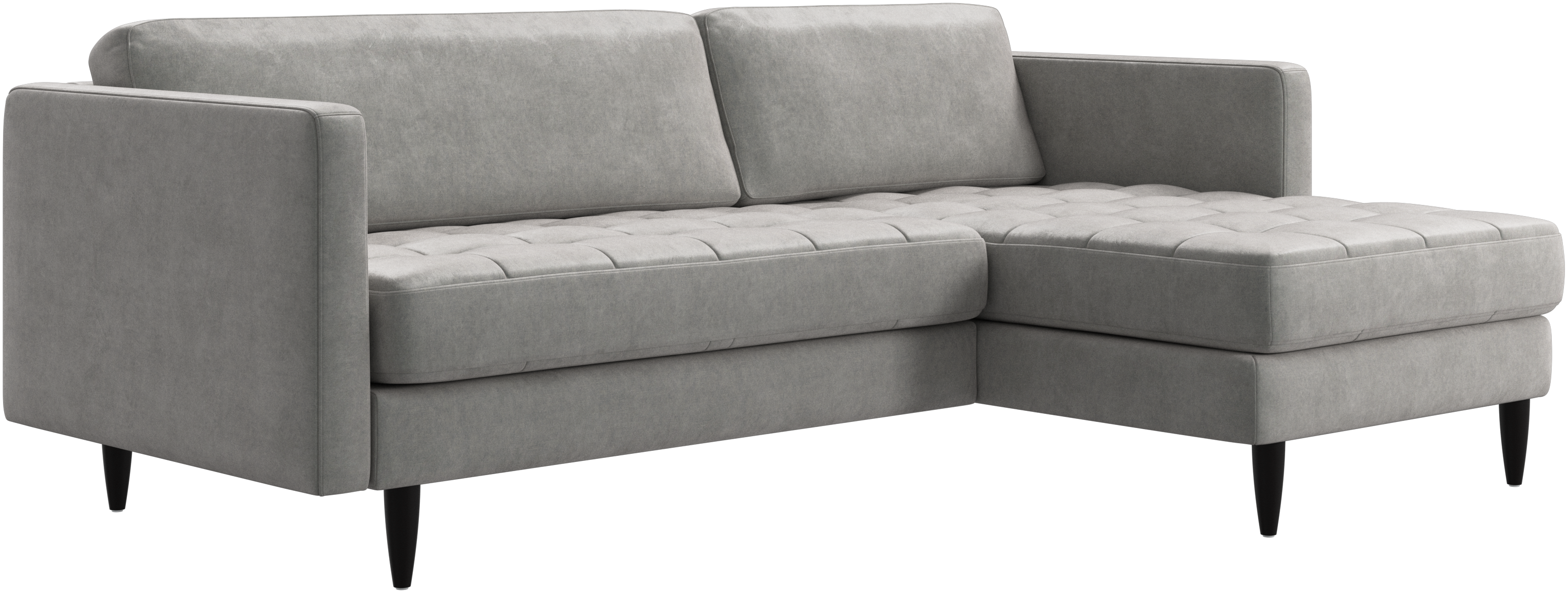 Ein leichter Look und schlanke Proportionen machen das Osaka Sofa zur idealen Wahl für kleine Wohnräume. Gleichzeitig sorgt das feminine, von den 60er Jahren inspirierte Design dafür, dass das Osaka Sofa einen bleibenden Eindruck hinterlassen wird. Die traumhaften, getufteten Sitzflächen erschaffen ein weiches Erscheinungsbild und verleihen Ihrem Wohnzimmer ein klassisches Design. Die klassischen senkrechten Armlehnen betonen die klaren Linien und das skandinavische Design. Legen Sie die Füße hoch, strecken Sie sich aus oder nutzen Sie die zusätzliche Sitzgelegenheit – die Entscheidung für dieses komfortable Sofa mit Récamiere werden Sie nicht bereuen.