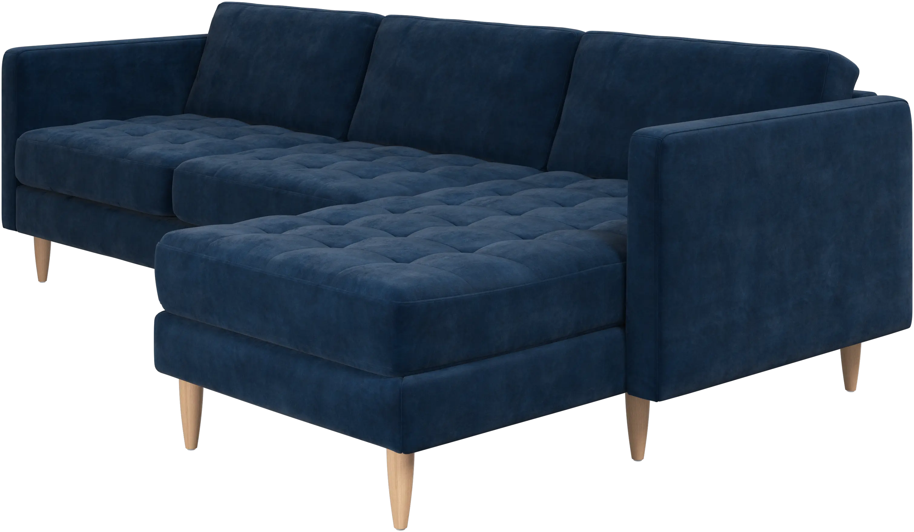 A light look and slim proportions make the Osaka sofa perfect for small homes, while a subtle feminine look and a touch of 60s design ensure that the Osaka sofa still packs a style punch. The beautiful tufted seats add visual softness and bring a classic look to your living room. The classic, straight armrests emphasise the clean lines and Scandinavian look. Put your feet up, stretch out or use it as an extra seat – you won’t be sorry for choosing this comfortable chaise longue sofa.