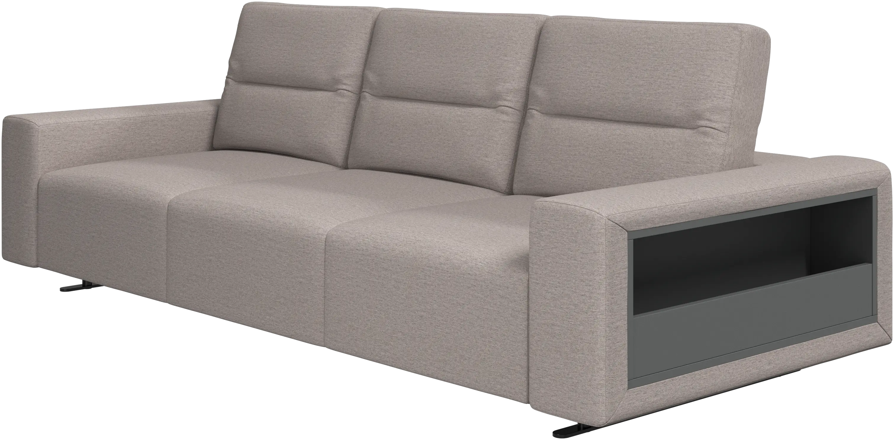 We know. It’s beautiful. But the modern Hampton sofa is much more than just good looks. A low base, a stunning loft look, adjustable backrests for comfort and visual impact – the Hampton sofa is the perfect personal retreat. Put your feet up, stretch out or use it as an extra seat – you won’t be sorry for choosing this comfortable chaise longue sofa. And with clever built-in storage in the armrest, you will always have your living room essentials at hand.