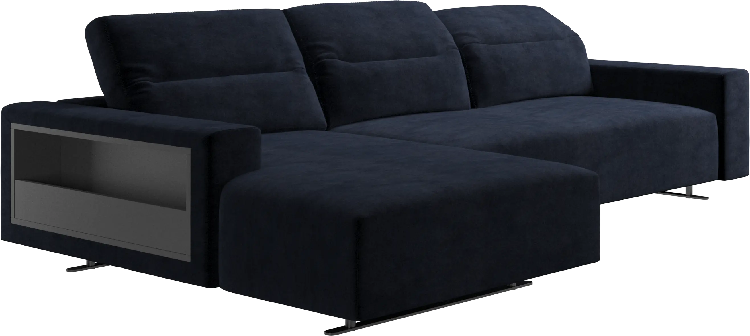 We know. It’s beautiful. But the modern Hampton sofa is much more than just good looks. A low base, a stunning loft look, adjustable backrests for comfort and visual impact – the Hampton sofa is the perfect personal retreat. Put your feet up, stretch out or use it as an extra seat – you won’t be sorry for choosing this comfortable chaise longue sofa. And with clever built-in storage in the armrest, you will always have your living room essentials at hand.