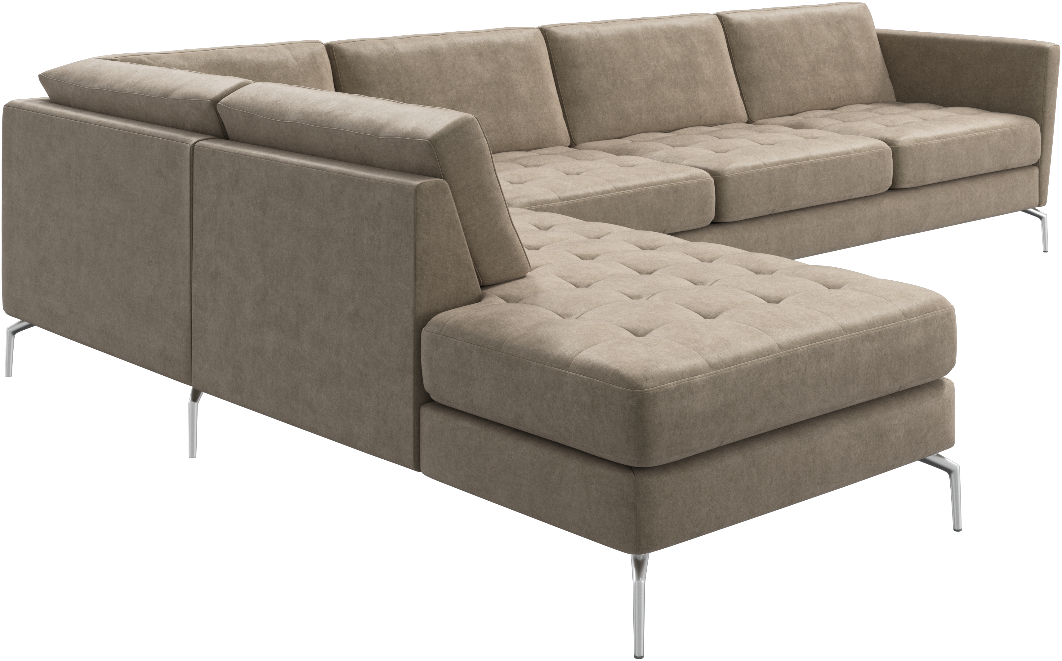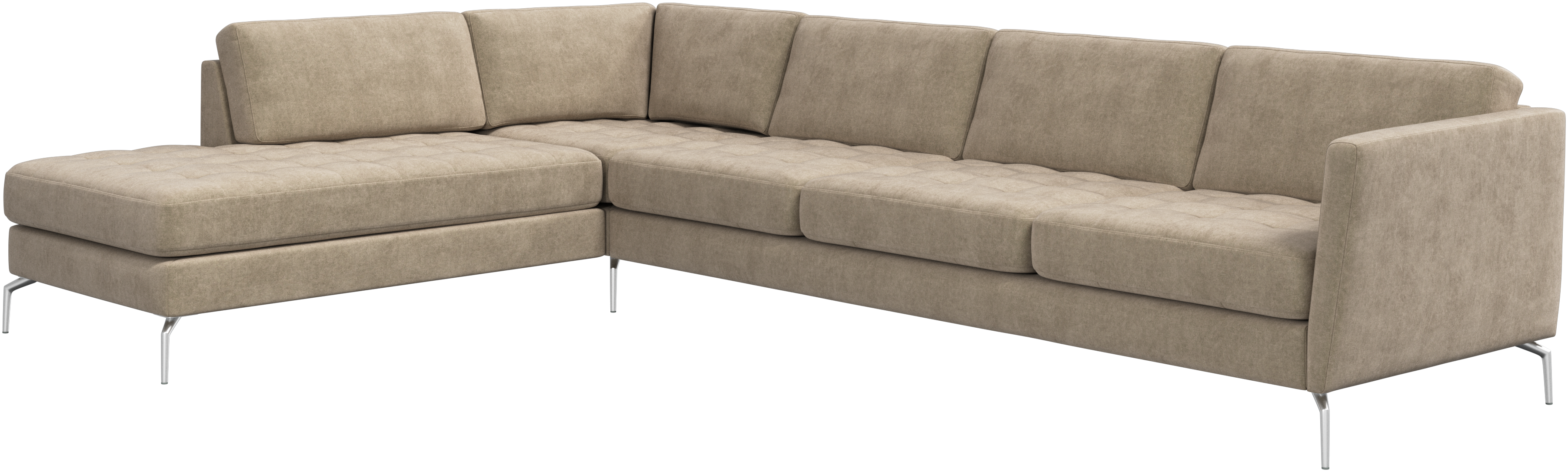 A light look and slim proportions make the Osaka sofa perfect for small homes, while a subtle feminine look and a touch of 60s design ensure that the Osaka sofa still packs a style punch. The beautiful tufted seats add visual softness and bring a classic look to your living room. Inclined armrests give the sofa a modern, unique look and open it up to the rest of the room. With plenty of room for the entire family this corner sofa will be the hero of your living room. The open end will create a dynamic, welcoming atmosphere - a true blessing for the integrated areas of open-plan living. Put your feet up, stretch out or use it as an extra seat – you won’t be sorry for choosing this comfortable chaise longue sofa.