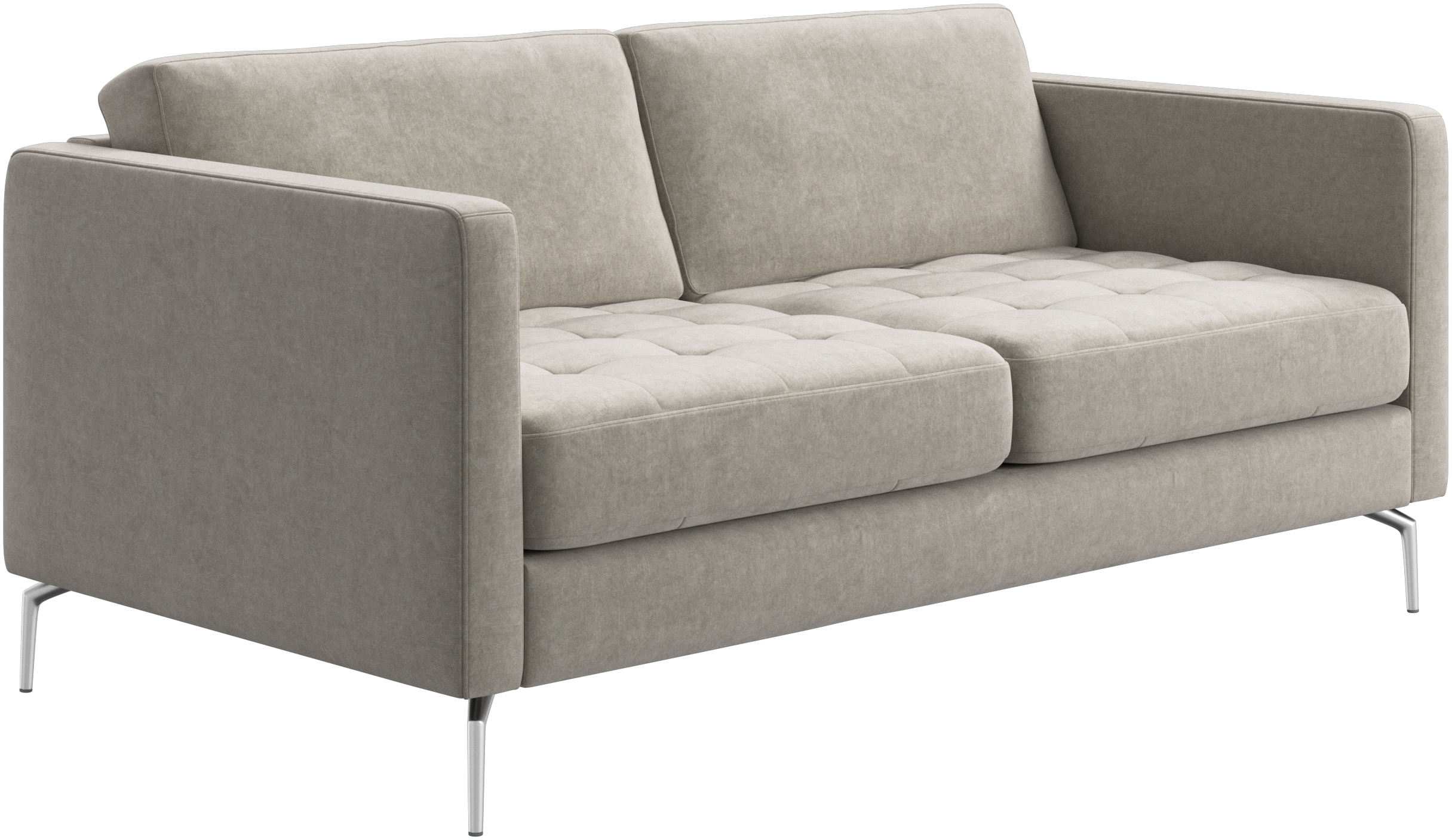 A light look and slim proportions make the Osaka sofa perfect for small homes, while a subtle feminine look and a touch of 60s design ensure that the Osaka sofa still packs a style punch. The beautiful tufted seats add visual softness and bring a classic look to your living room. The classic, straight armrests emphasise the clean lines and Scandinavian look. Though small in size, this 2 seater sofa is big on style and will perfectly fit a small living room.