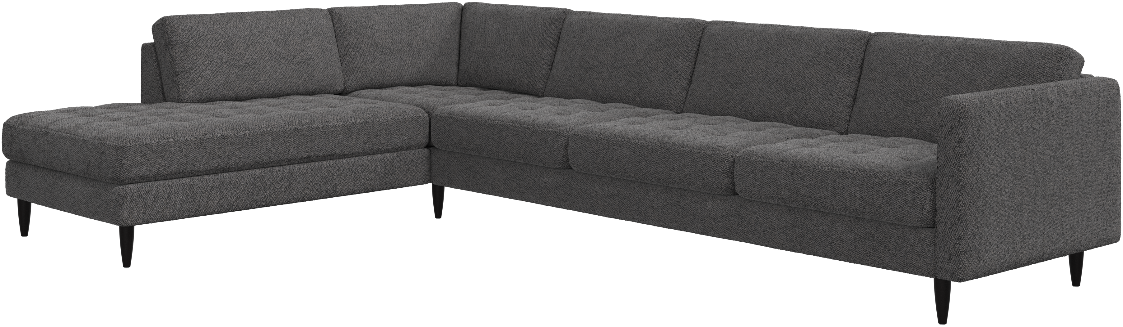 A light look and slim proportions make the Osaka sofa perfect for small homes, while a subtle feminine look and a touch of 60s design ensure that the Osaka sofa still packs a style punch. The beautiful tufted seats add visual softness and bring a classic look to your living room. The classic, straight armrests emphasise the clean lines and Scandinavian look. With plenty of room for the entire family this corner sofa will be the hero of your living room. The open end will create a dynamic, welcoming atmosphere - a true blessing for the integrated areas of open-plan living. Put your feet up, stretch out or use it as an extra seat – you won’t be sorry for choosing this comfortable chaise longue sofa.