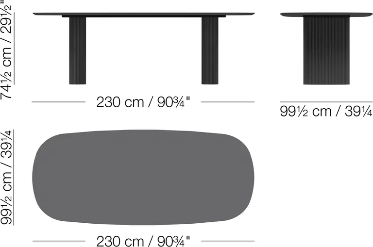 Santiago is all about curves with an oval or round-shaped tabletop for a contemporary organic look and feel.