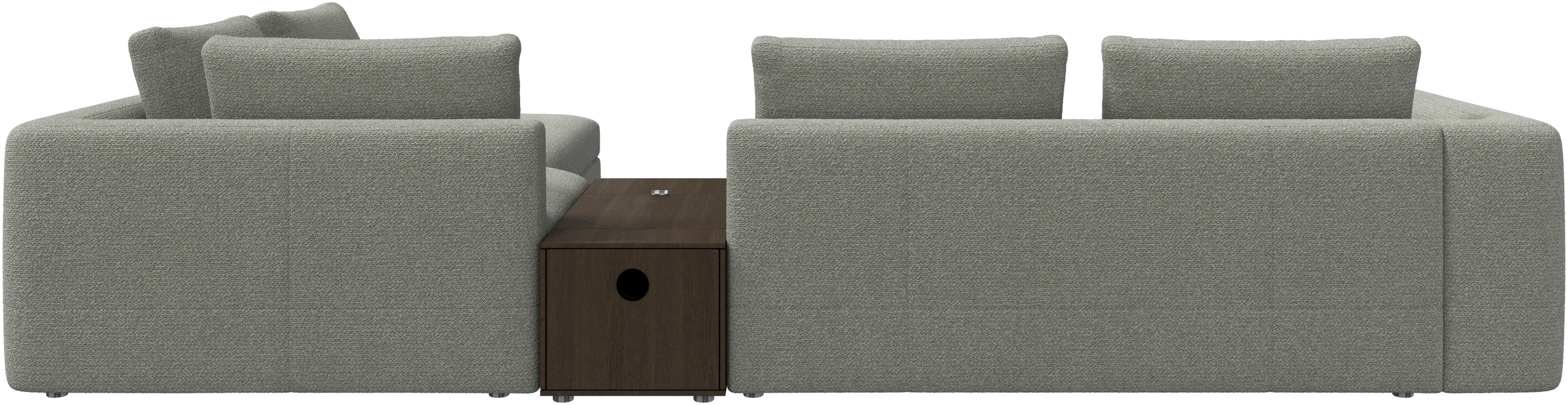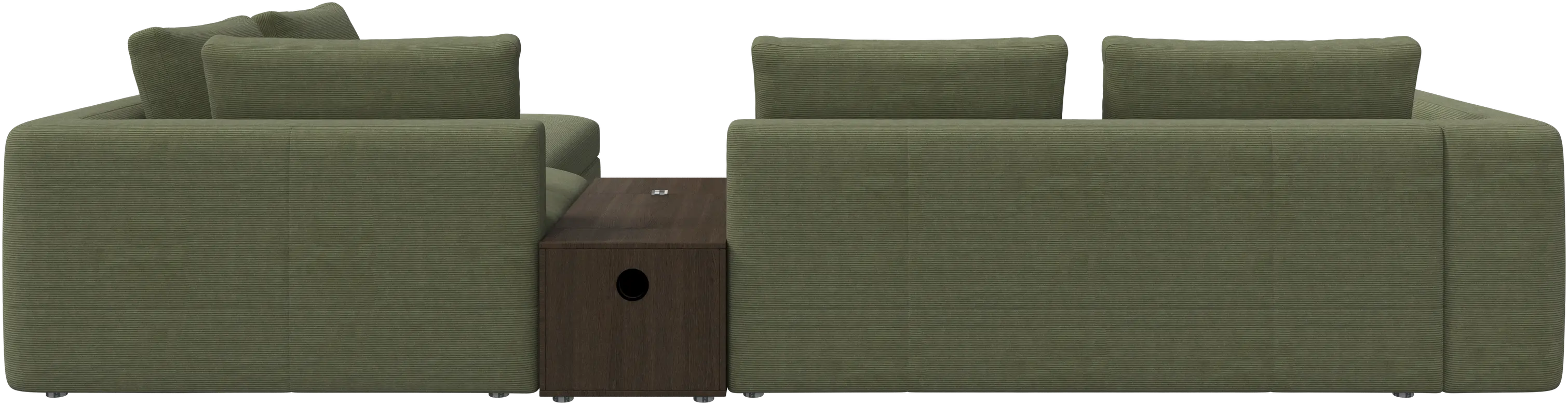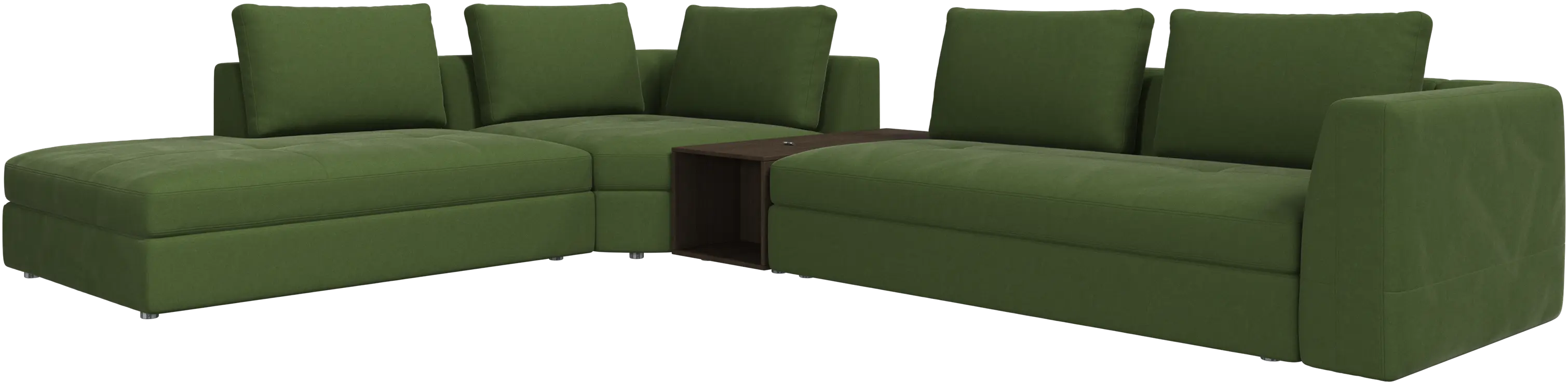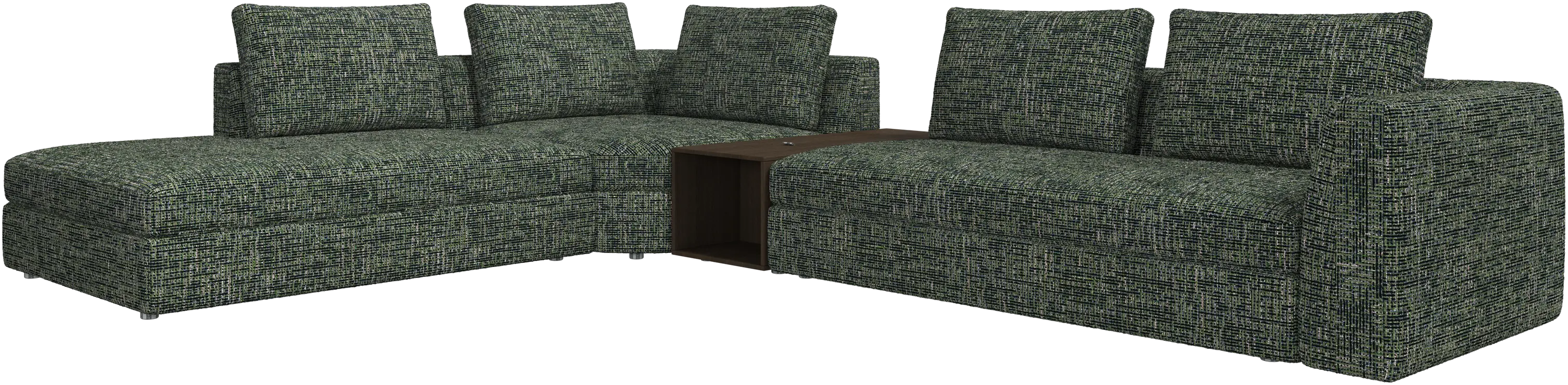 - Bergamo corner sofa with lounging unit and footstool w/storageFabric • WoodR148 900,00