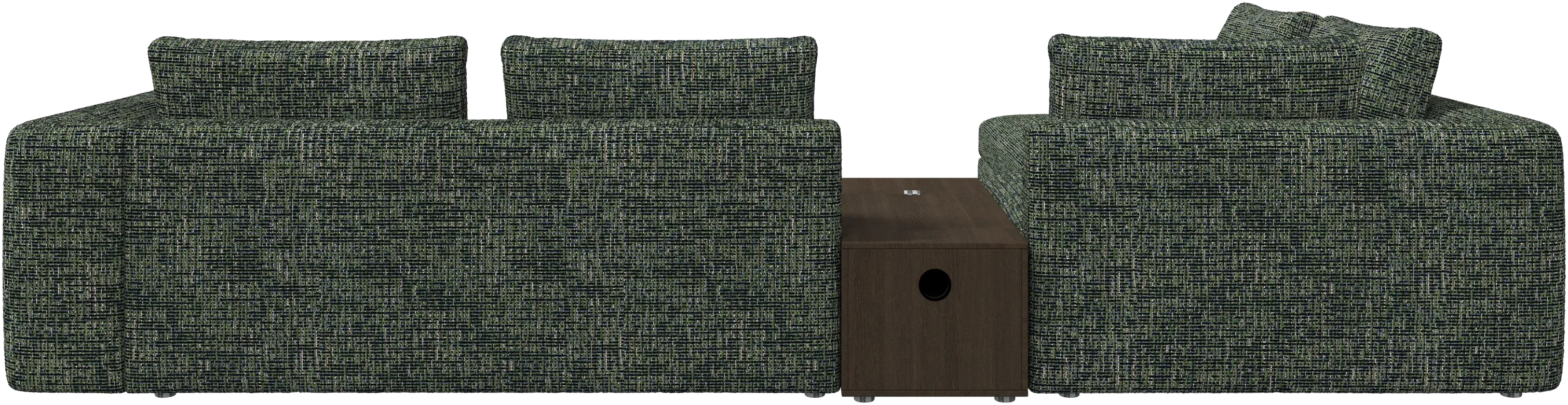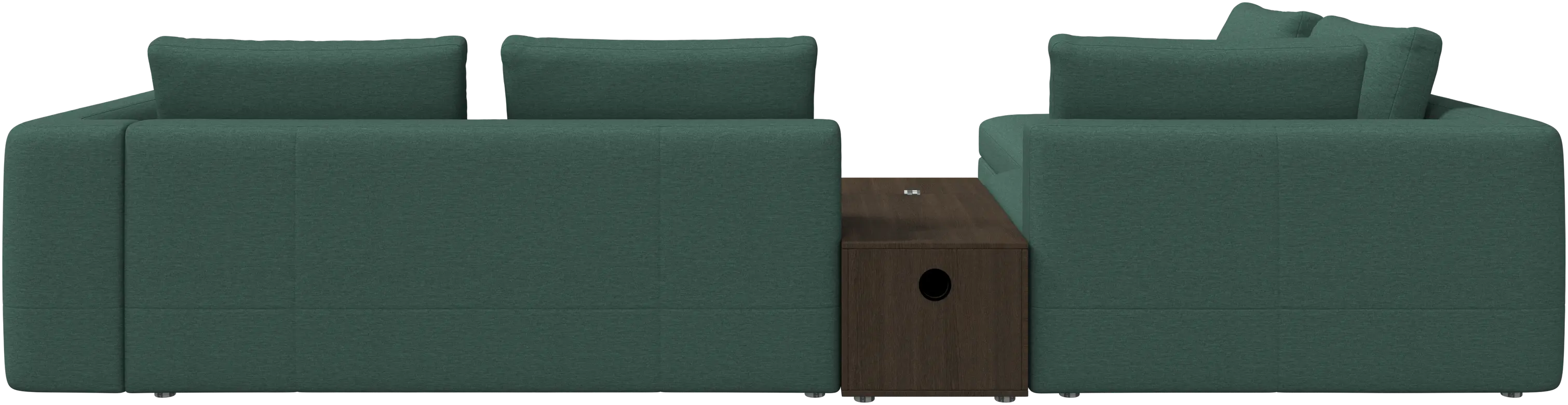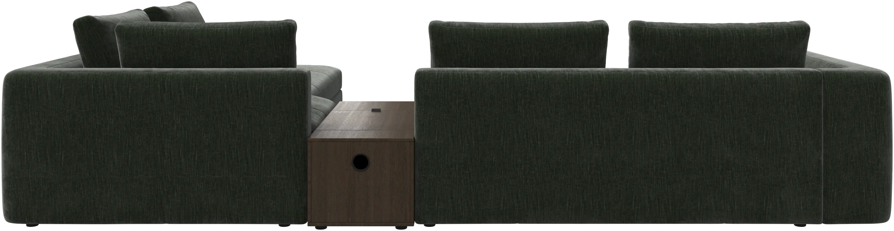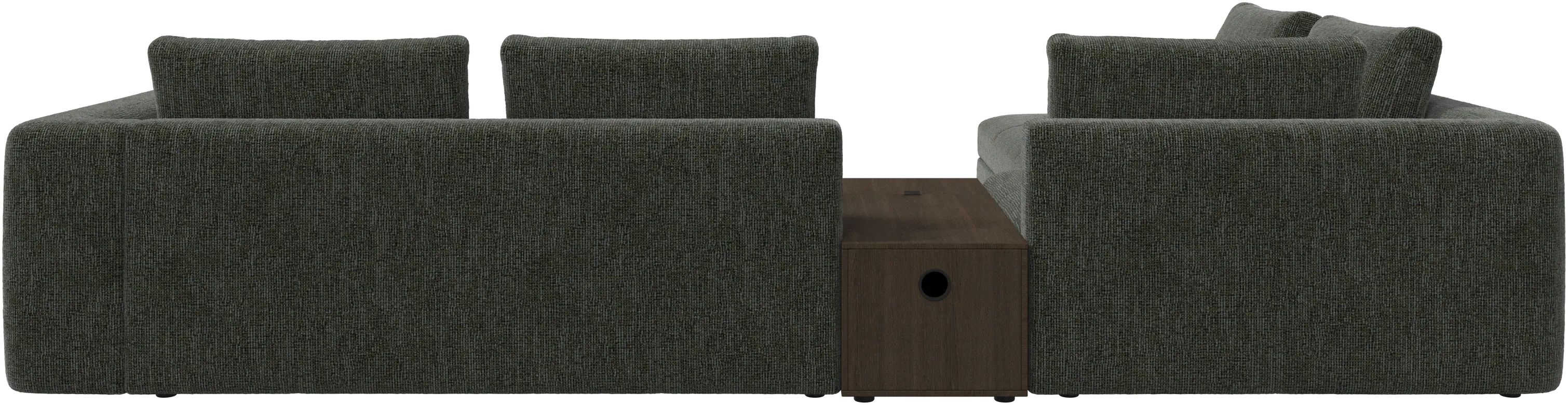 - Bergamo corner sofa with lounging unit and footstool w/storageFabric • WoodR148 900,00