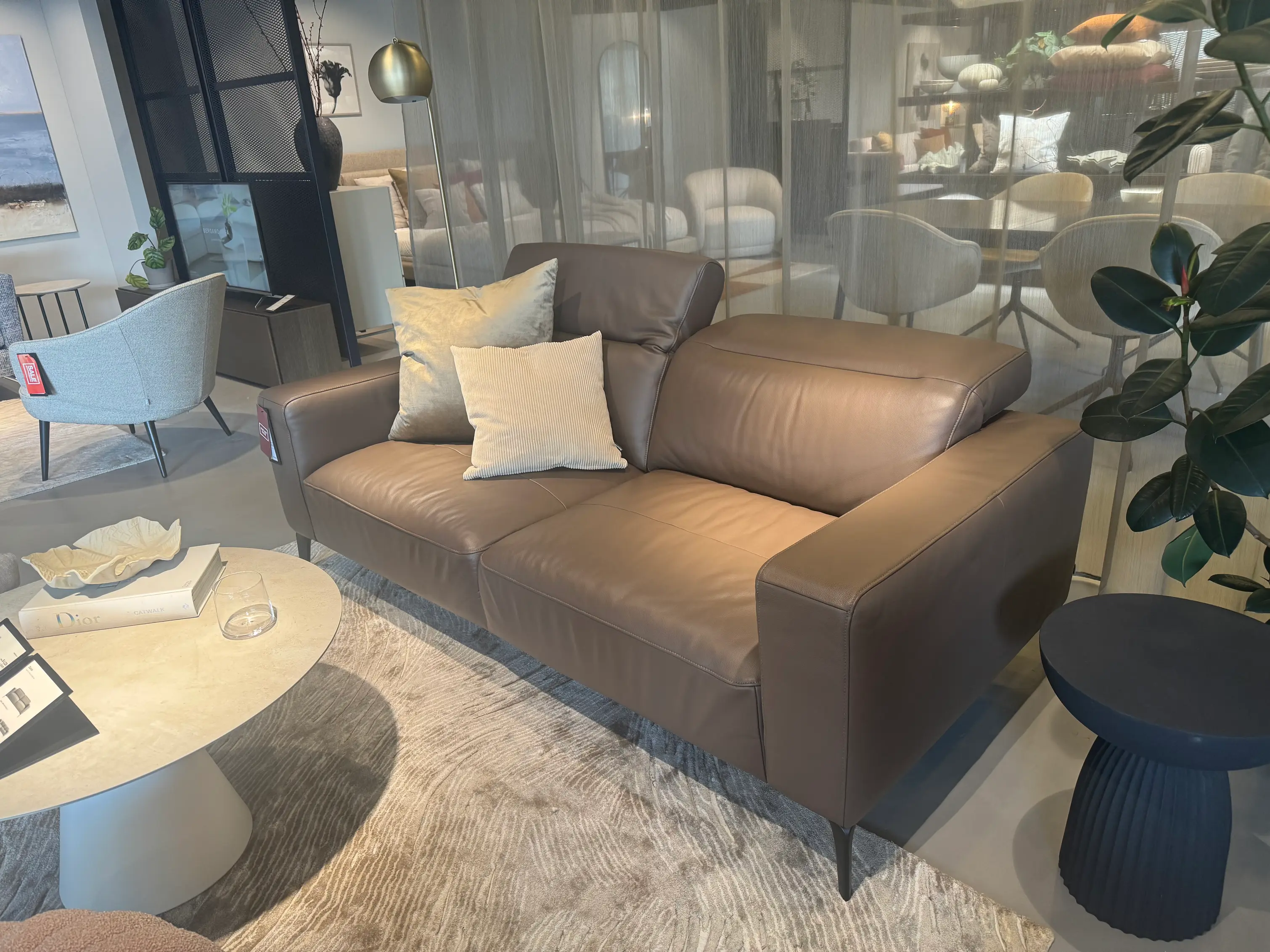 Zürich 2.5 seater sofa with adjustable headrests, stone Nordic grain leather
