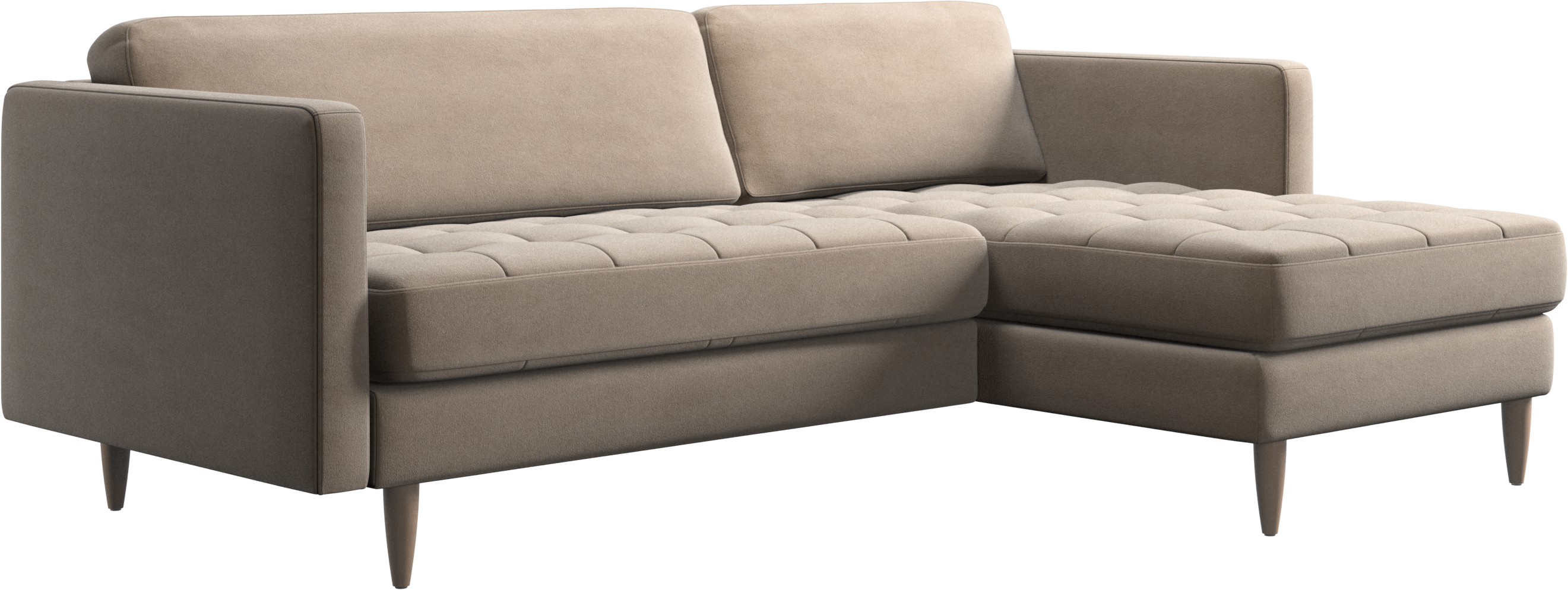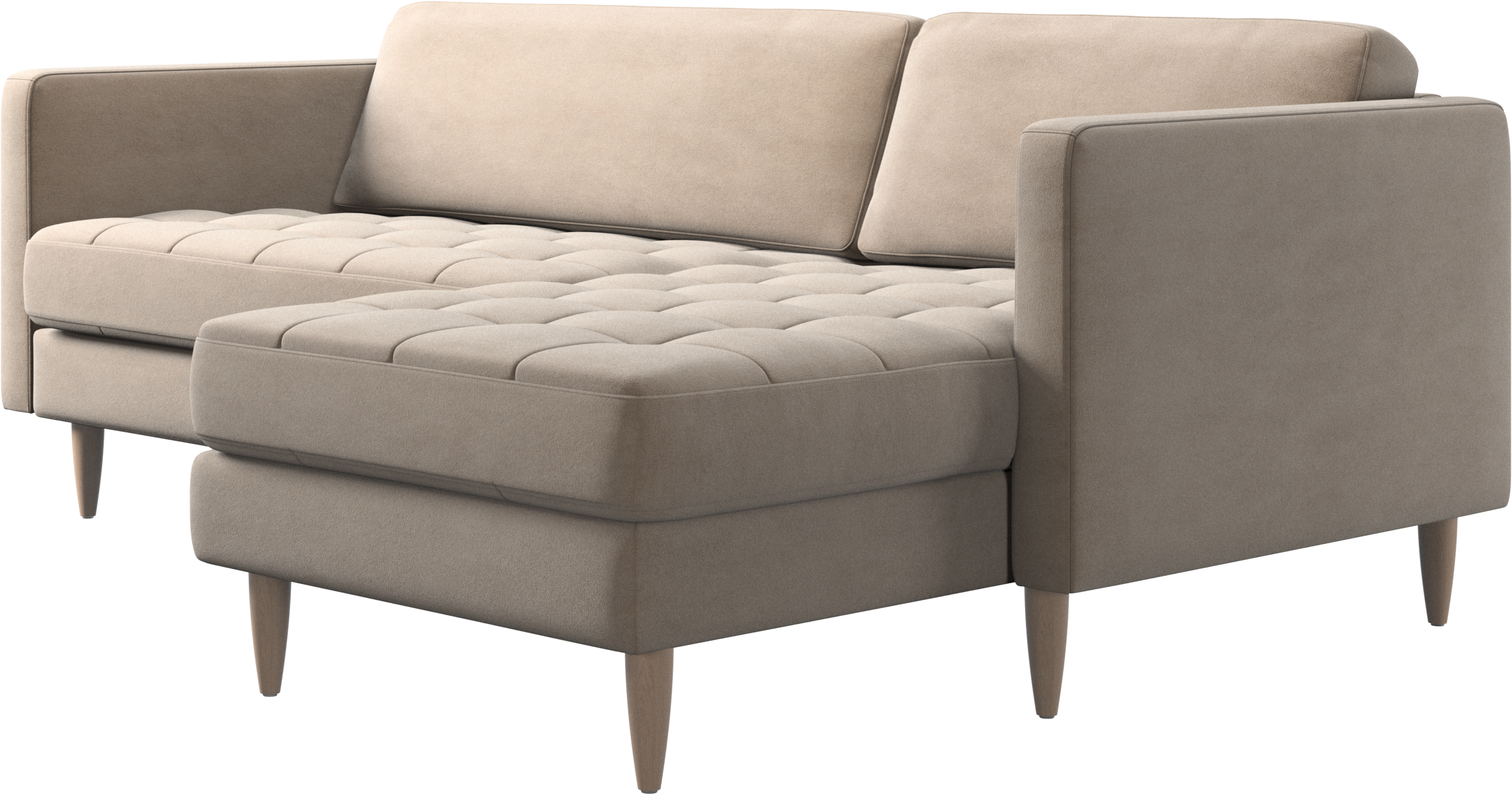 A light look and slim proportions make the Osaka sofa perfect for small homes, while a subtle feminine look and a touch of 60s design ensure that the Osaka sofa still packs a style punch. The beautiful tufted seats add visual softness and bring a classic look to your living room. The classic, straight armrests emphasise the clean lines and Scandinavian look. Put your feet up, stretch out or use it as an extra seat – you won’t be sorry for choosing this comfortable chaise longue sofa.