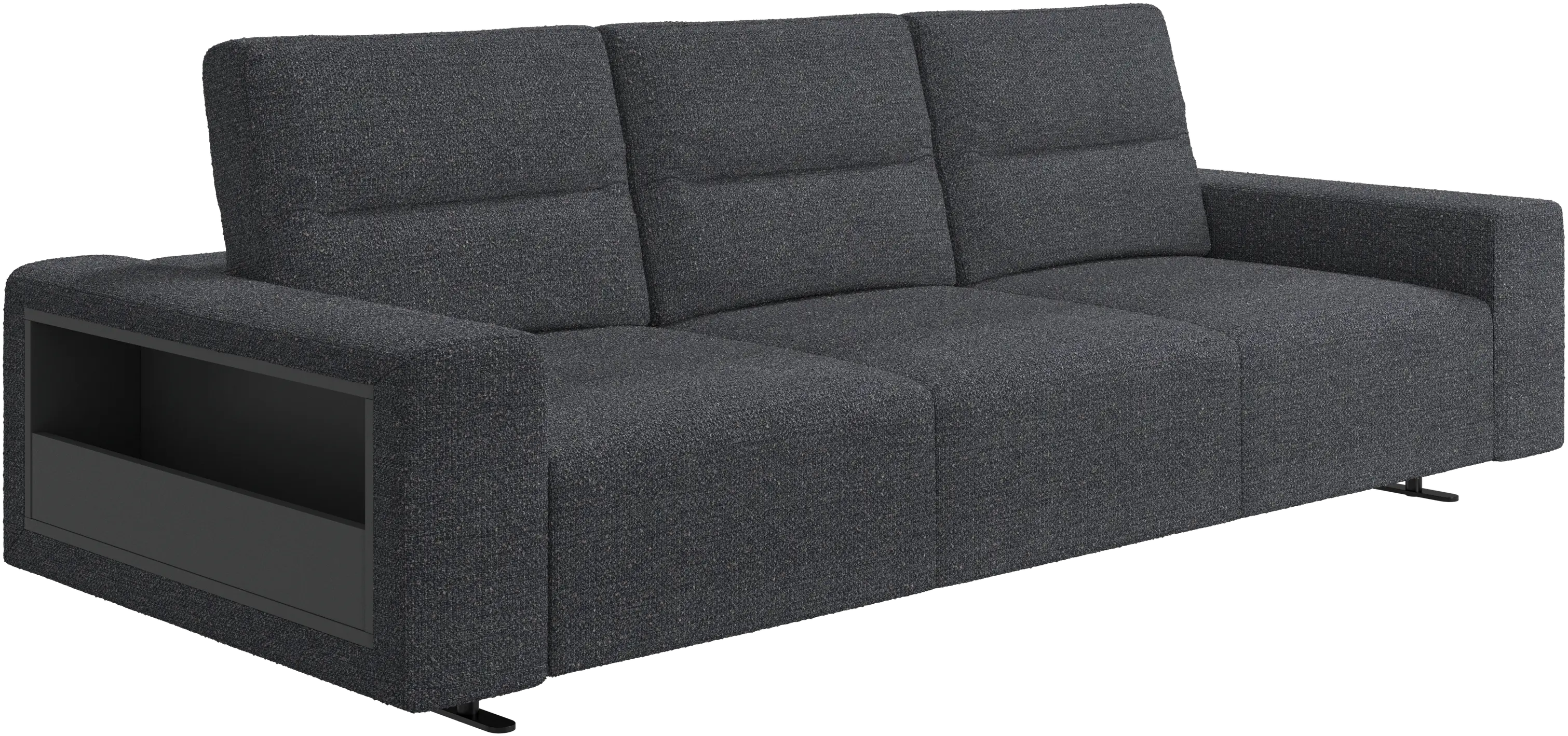 We know. It’s beautiful. But the modern Hampton sofa is much more than just good looks. A low base, a stunning loft look, adjustable backrests for comfort and visual impact – the Hampton sofa is the perfect personal retreat. Put your feet up, stretch out or use it as an extra seat – you won’t be sorry for choosing this comfortable chaise longue sofa. And with clever built-in storage in the armrest, you will always have your living room essentials at hand.