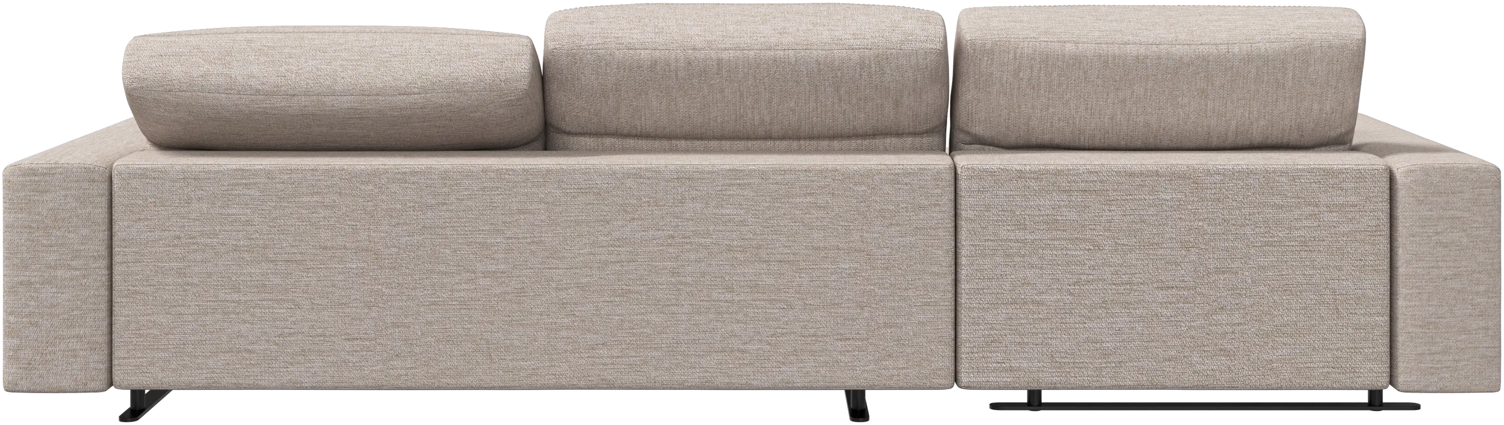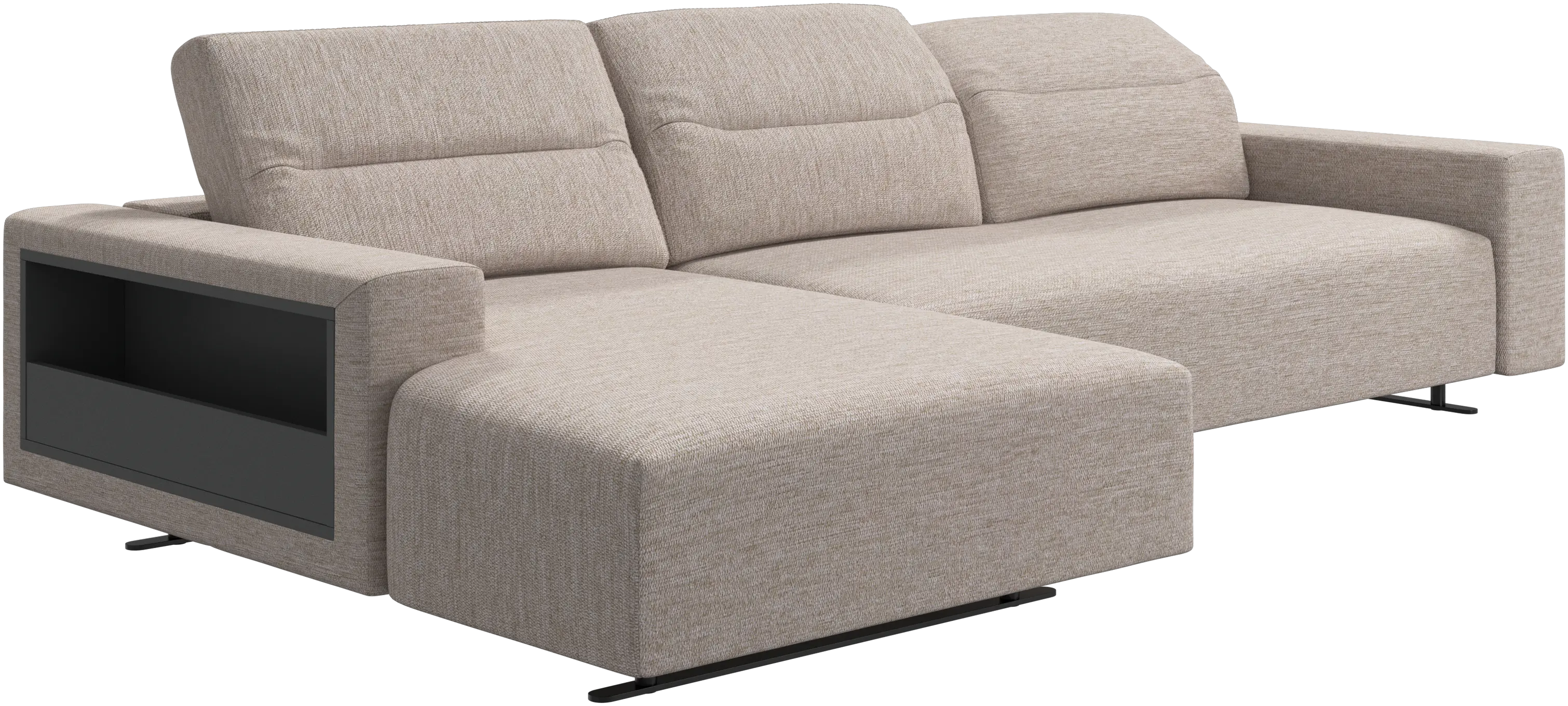 We know. It’s beautiful. But the modern Hampton sofa is much more than just good looks. A low base, a stunning loft look, adjustable backrests for comfort and visual impact – the Hampton sofa is the perfect personal retreat. Put your feet up, stretch out or use it as an extra seat – you won’t be sorry for choosing this comfortable chaise longue sofa. And with clever built-in storage in the armrest, you will always have your living room essentials at hand.