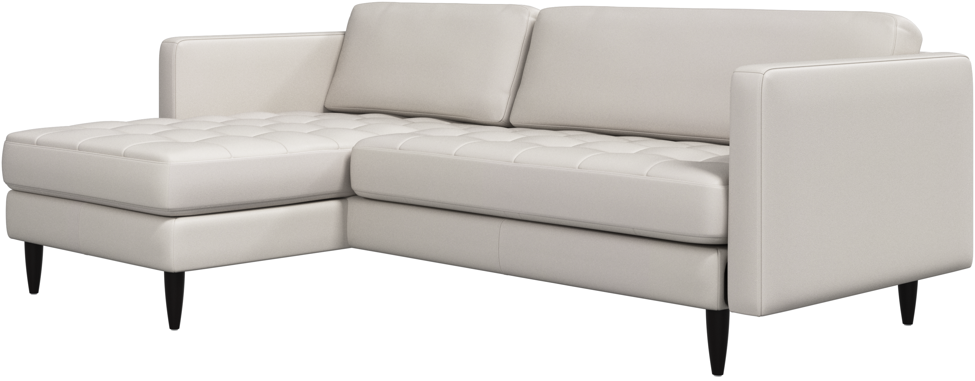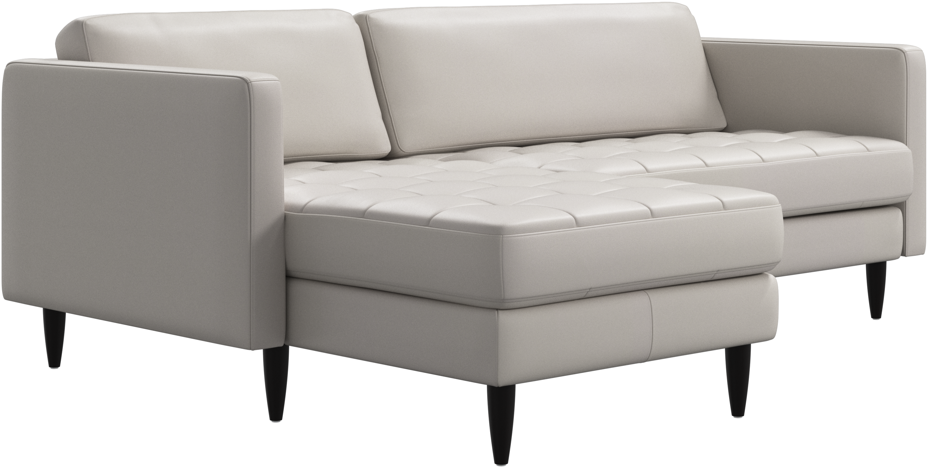 A light look and slim proportions make the Osaka sofa perfect for small homes, while a subtle feminine look and a touch of 60s design ensure that the Osaka sofa still packs a style punch. The beautiful tufted seats add visual softness and bring a classic look to your living room. The classic, straight armrests emphasise the clean lines and Scandinavian look. Put your feet up, stretch out or use it as an extra seat – you won’t be sorry for choosing this comfortable chaise longue sofa.