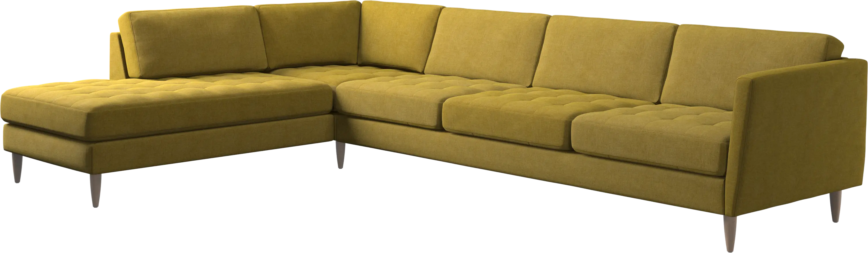 A light look and slim proportions make the Osaka sofa perfect for small homes, while a subtle feminine look and a touch of 60s design ensure that the Osaka sofa still packs a style punch. The beautiful tufted seats add visual softness and bring a classic look to your living room. Inclined armrests give the sofa a modern, unique look and open it up to the rest of the room. With plenty of room for the entire family this corner sofa will be the hero of your living room. The open end will create a dynamic, welcoming atmosphere - a true blessing for the integrated areas of open-plan living. Put your feet up, stretch out or use it as an extra seat – you won’t be sorry for choosing this comfortable chaise longue sofa.