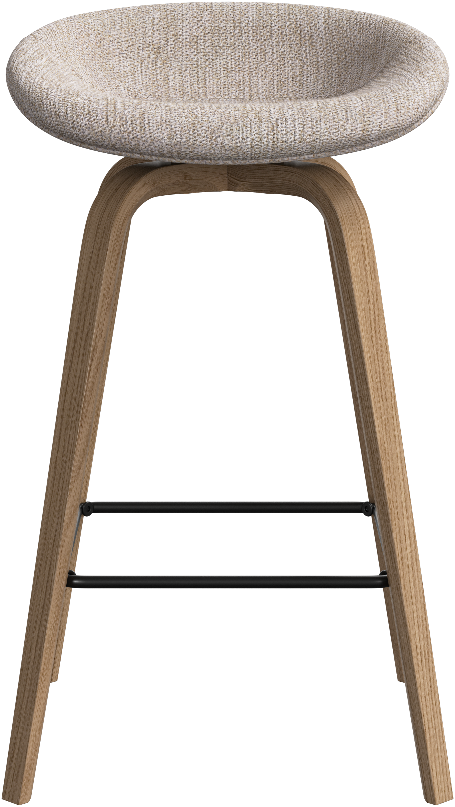 The Hauge bar stool's soft, organic form is your stylish solution for elevated seating. It has a fixed height to fit your home bar or open kitchen space and a metal footrest for contemporary comfort.