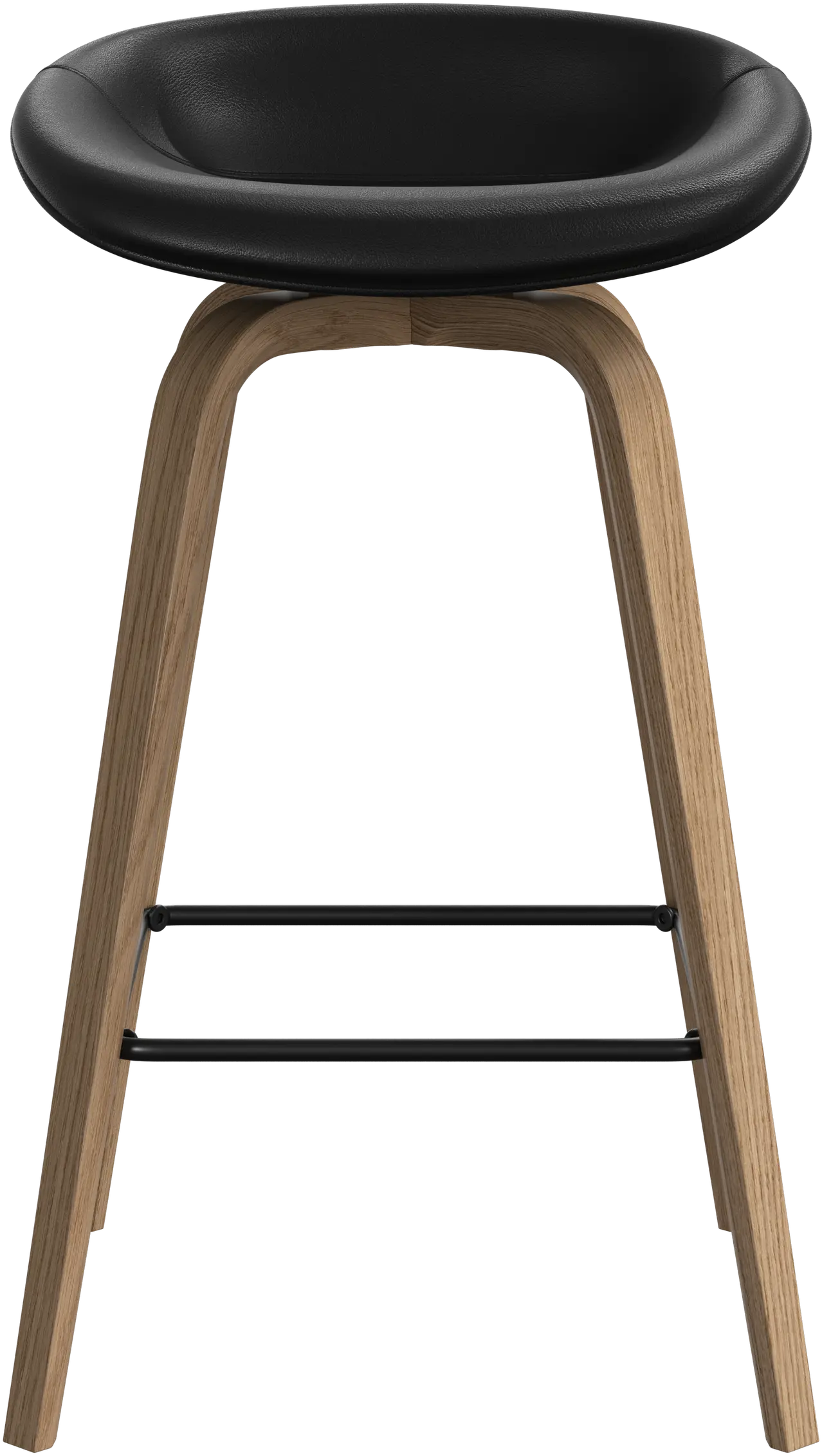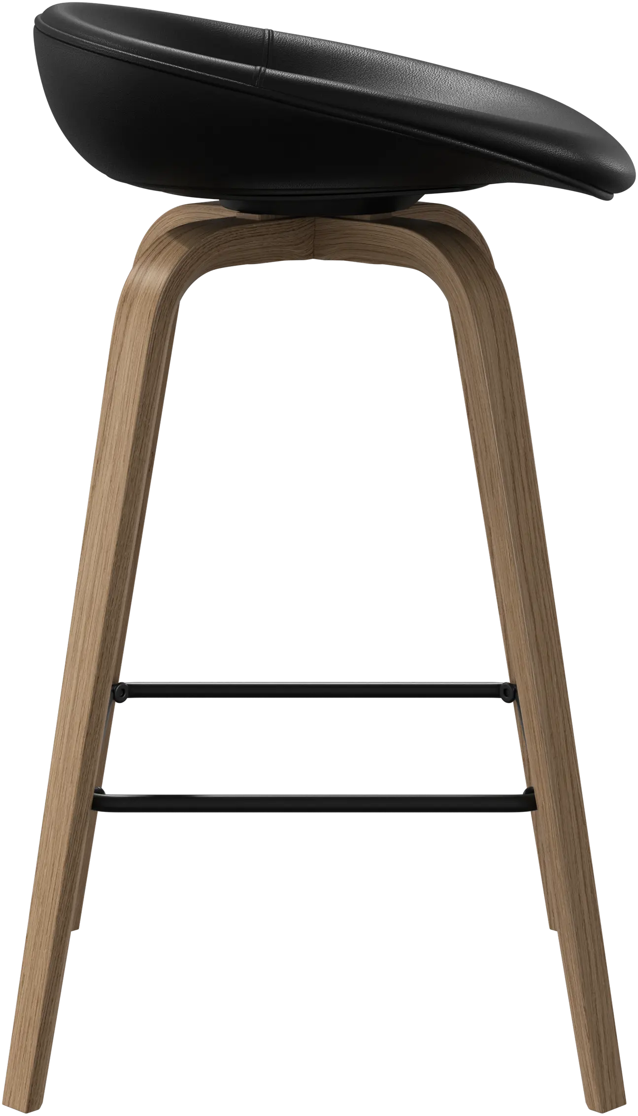 The Hauge bar stool's soft, organic form is your stylish solution for elevated seating. It has a fixed height to fit your home bar or open kitchen space and a metal footrest for contemporary comfort.